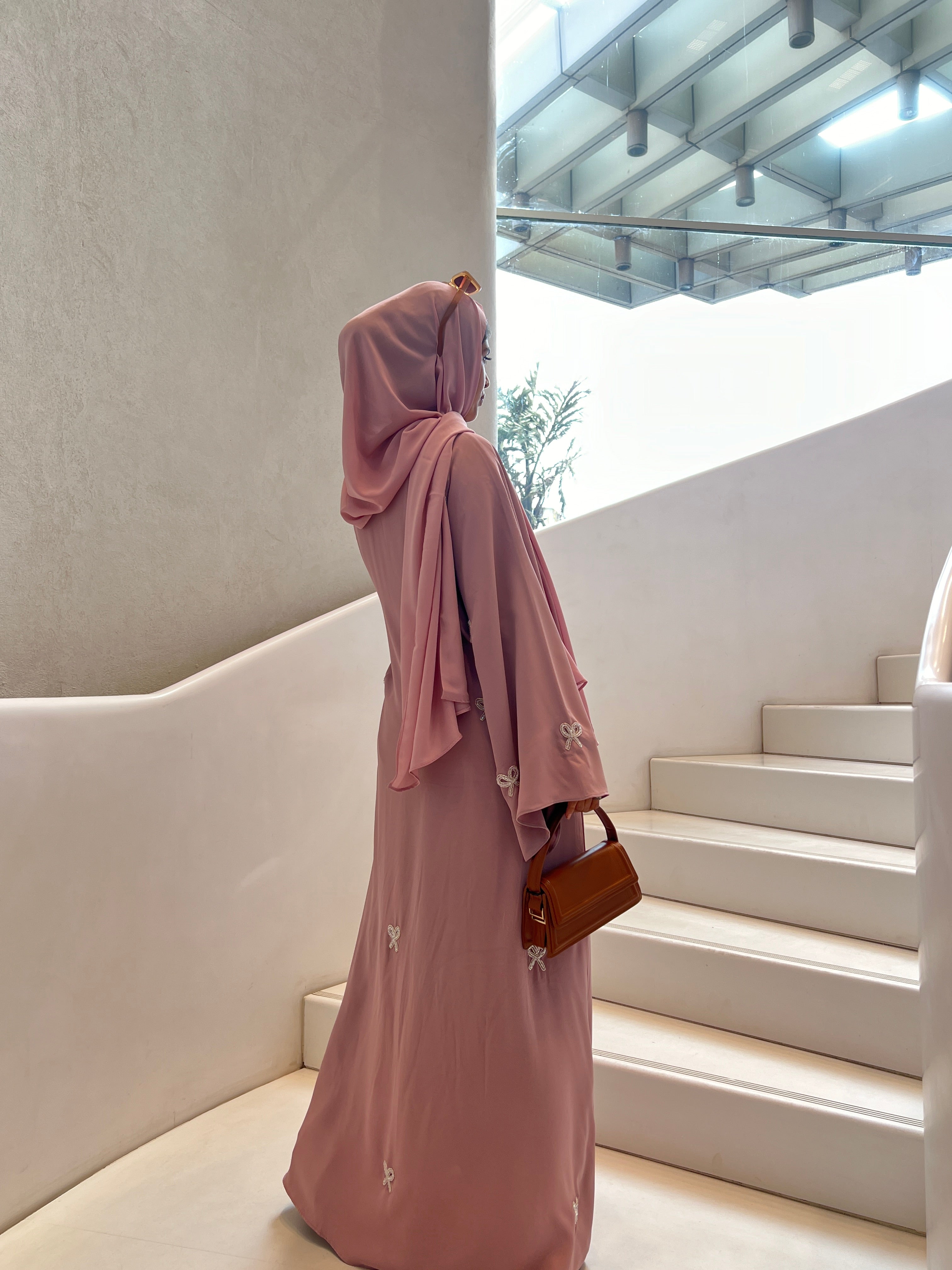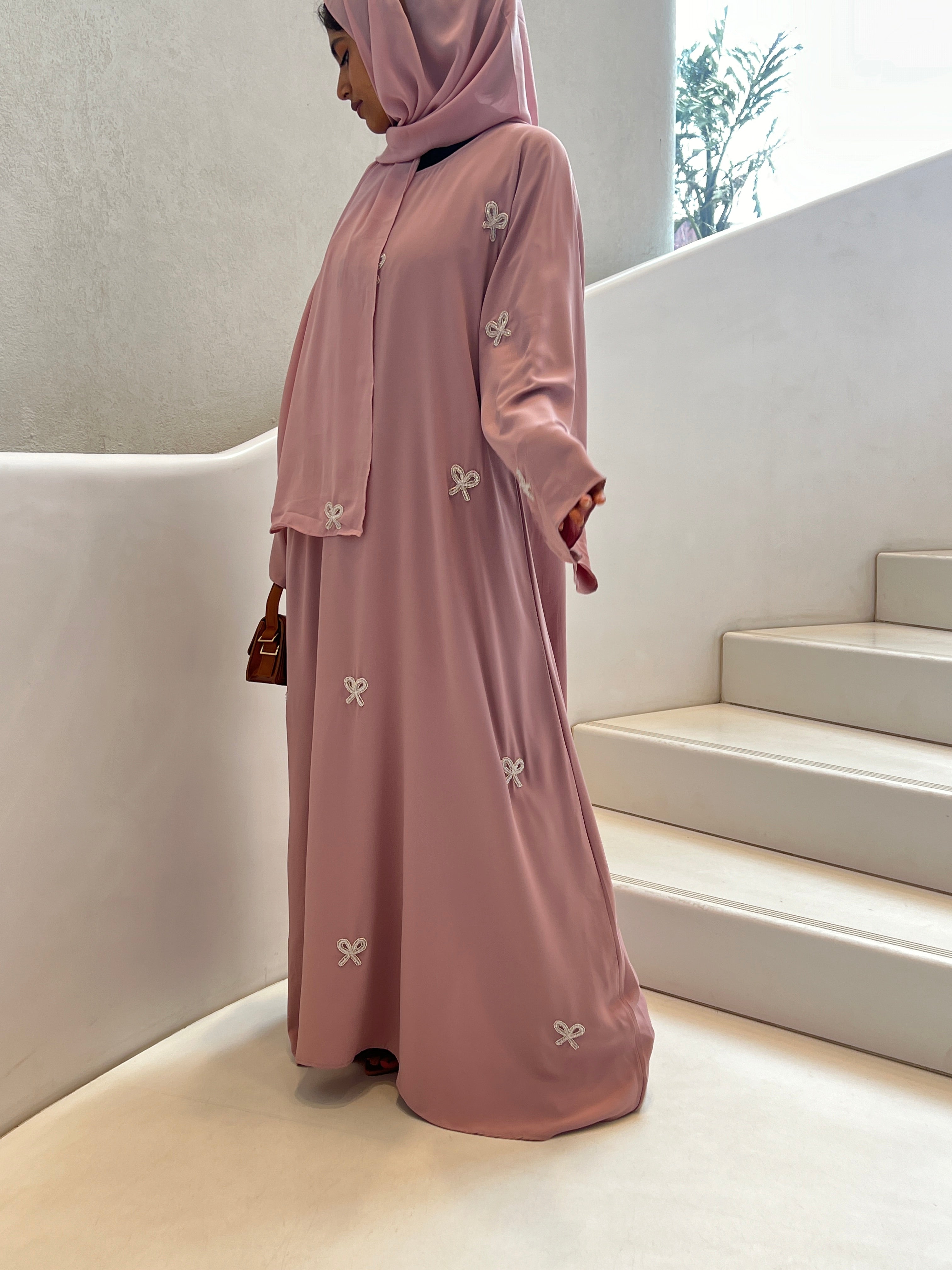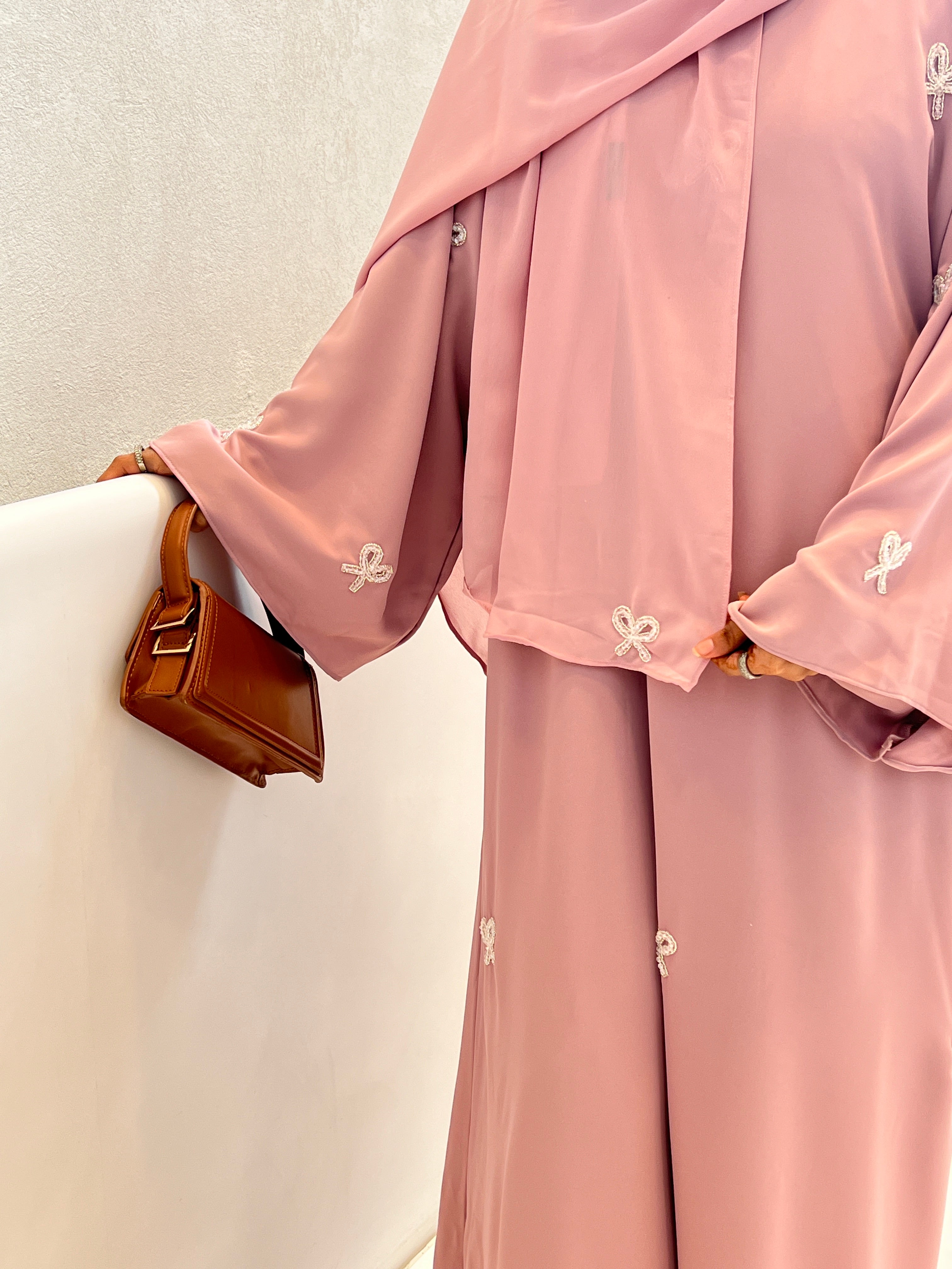 Coquette Embroidered Abaya- Pink