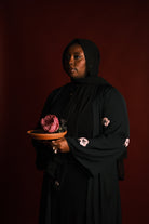 Crafted from the finest materials, this abaya features delicate hibiscus flower embroideries cascading gracefully over the sleeves, symbolizing Sudan’s national flower and the enduring resilience of its people. Each stitch carries meaning, weaving together heritage, hope, and the call for a brighter tomorrow.