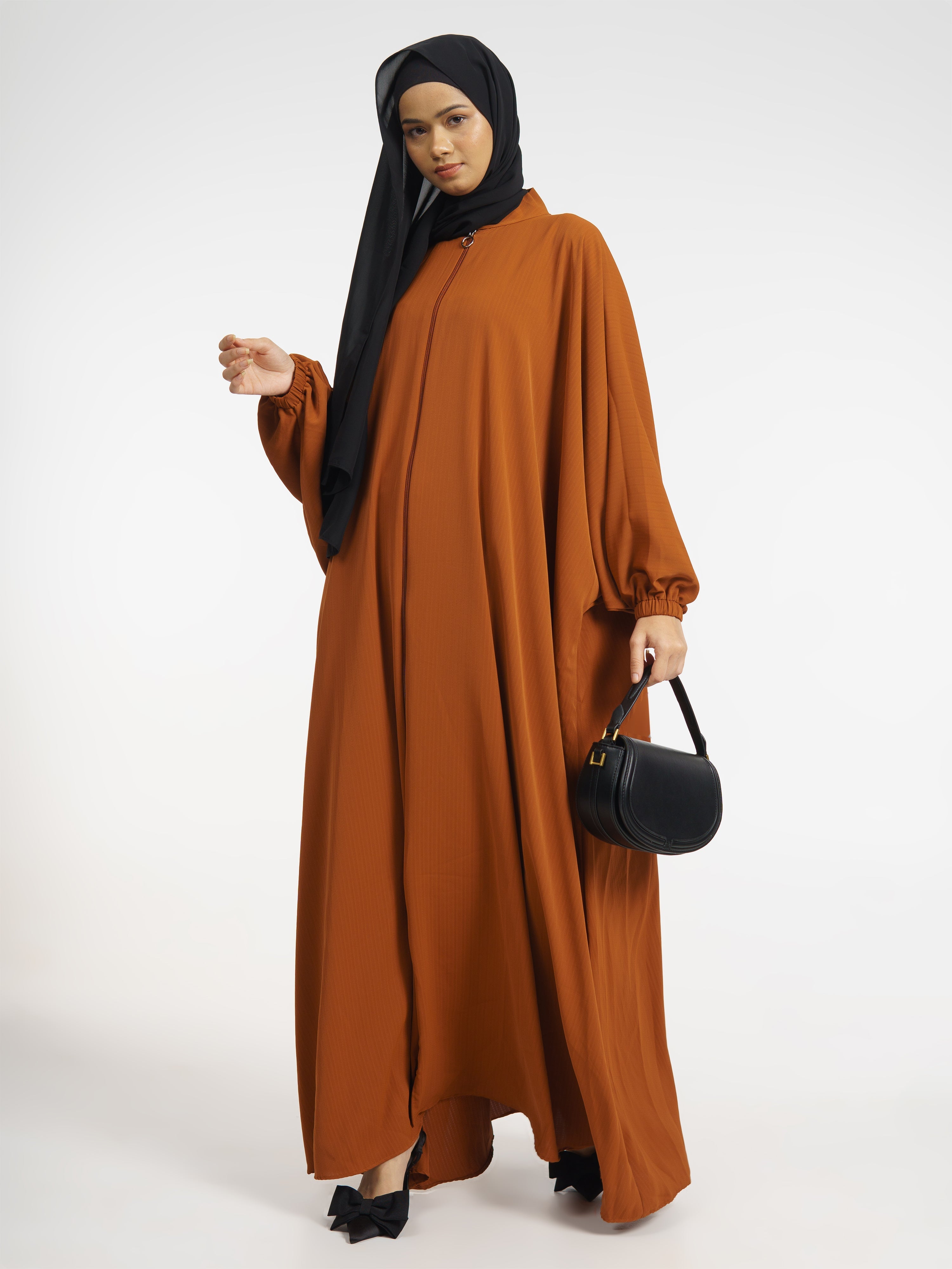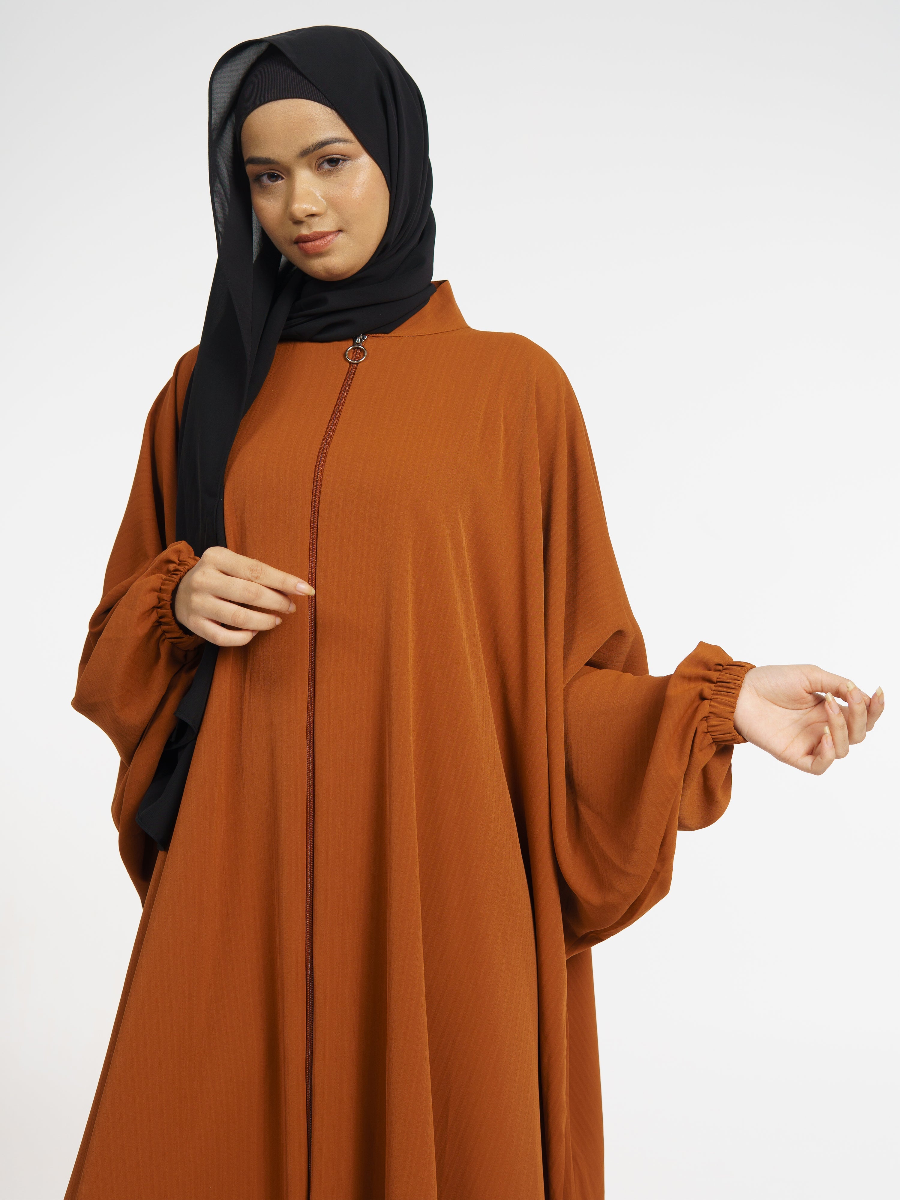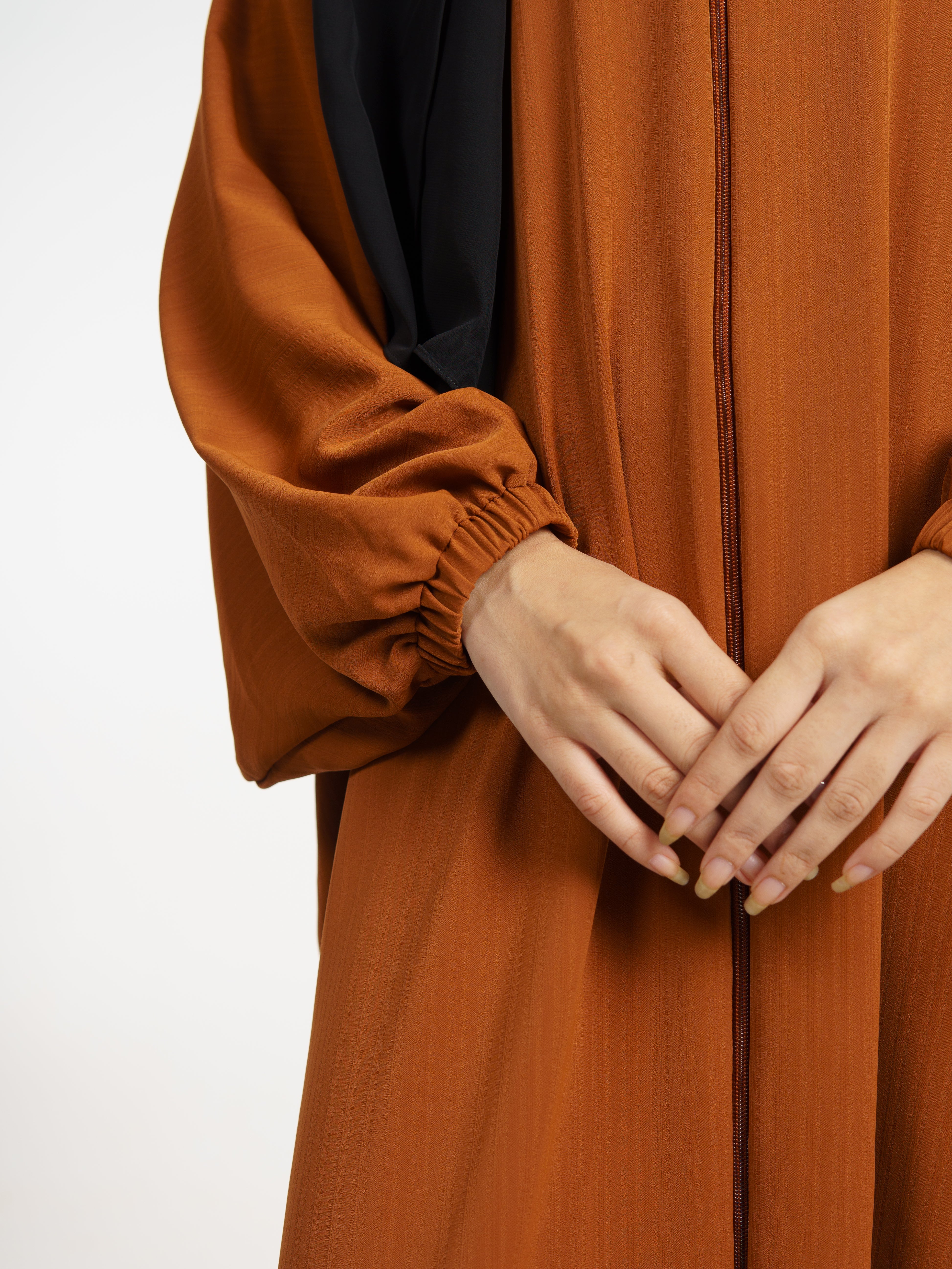 Introducing our versatile Lina Zipper Abaya in Rust, designed for modern everyday wear. The zipper opens all the way down, giving you the option to wear it open or closed, depending on your style preference. The Lina Zipper Abaya - Rust is perfect for everyday use, offering both comfort and functionality. Elevate your modest wardrobe with this chic and practical piece that seamlessly blends style and convenience.