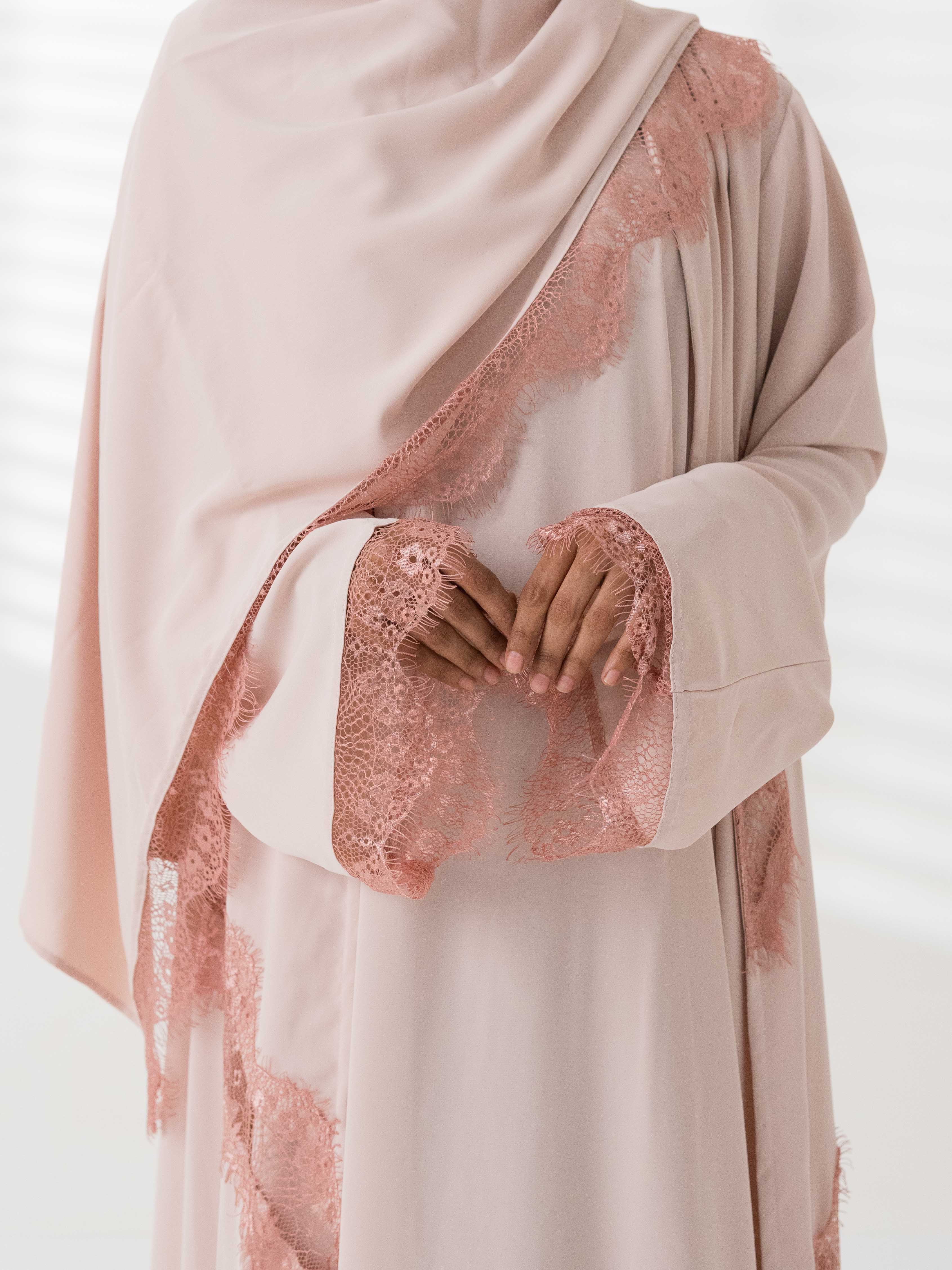 - Exquisite lace design on the abaya and hijab for a refined touch.