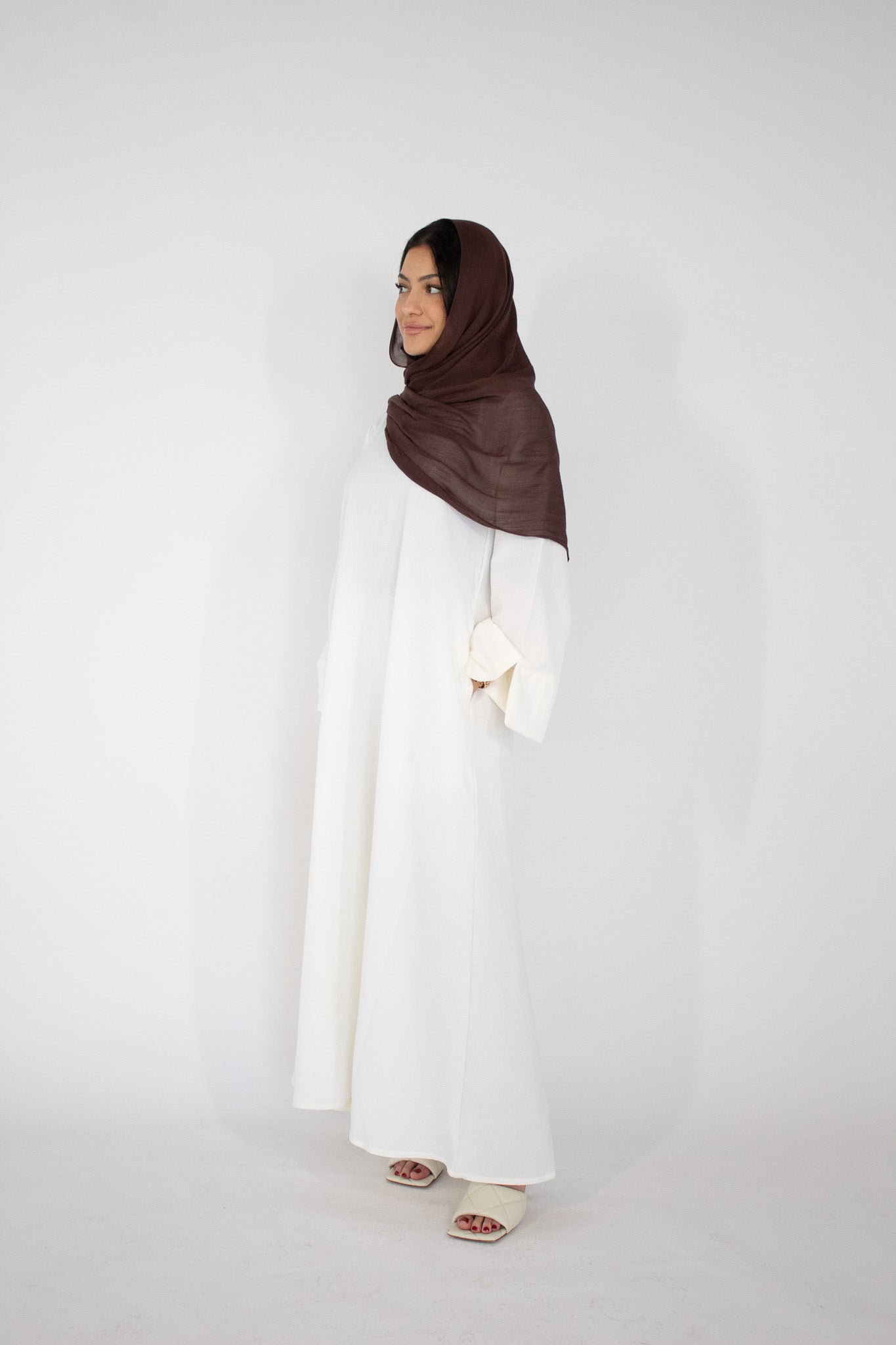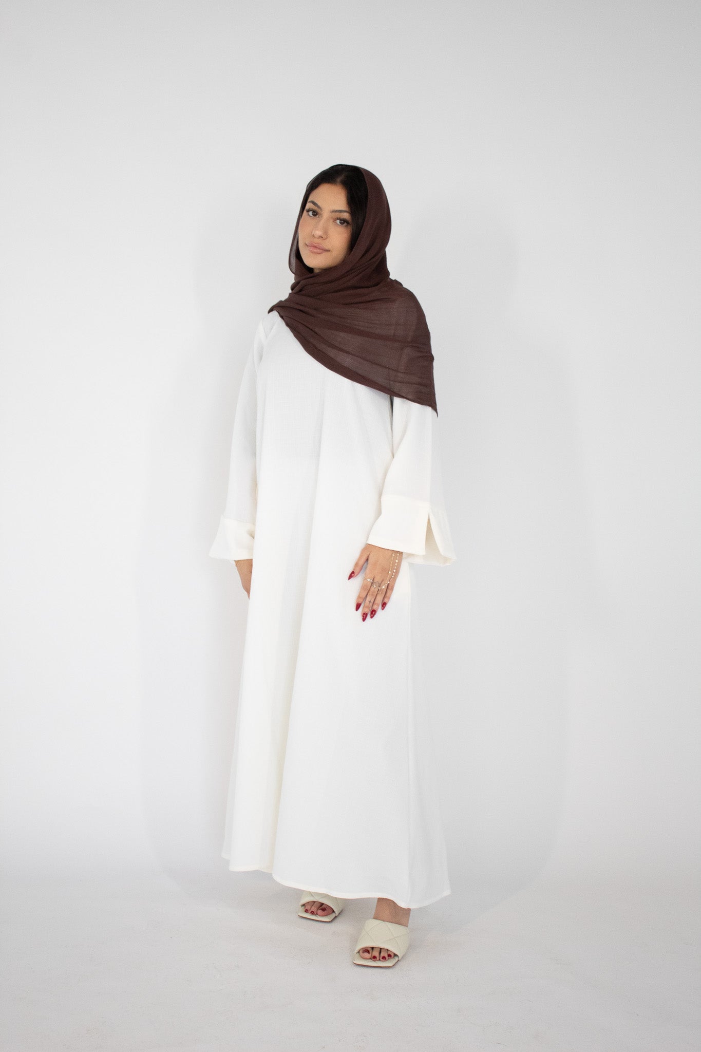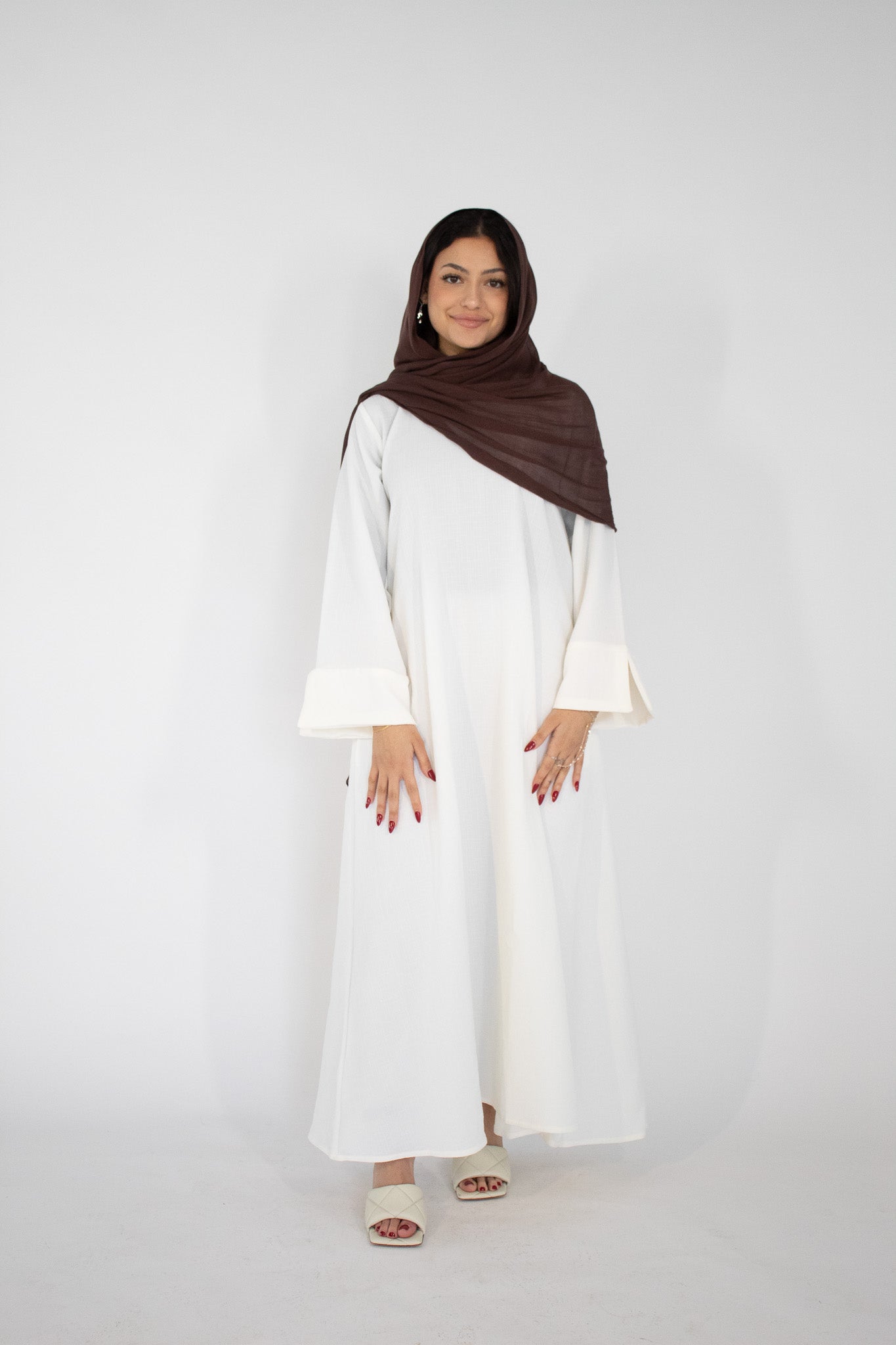 Whether you're attending Taraweeh prayers, hosting Iftar gatherings, or simply enjoying quiet moments of reflection, the Naima Linen Abaya is your go-to choice for a chic and modest Ramadan style.