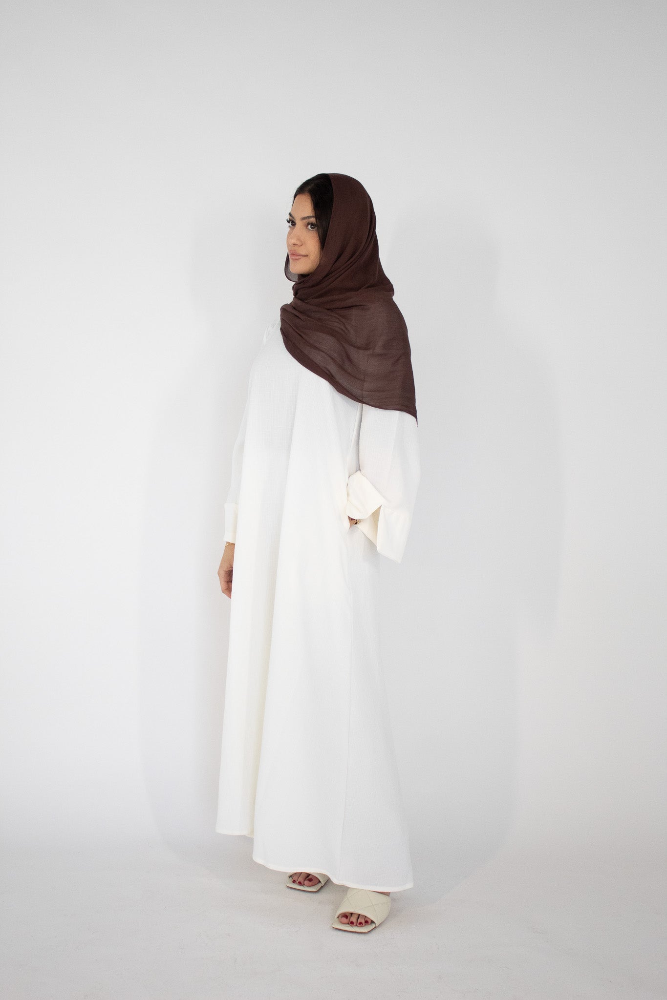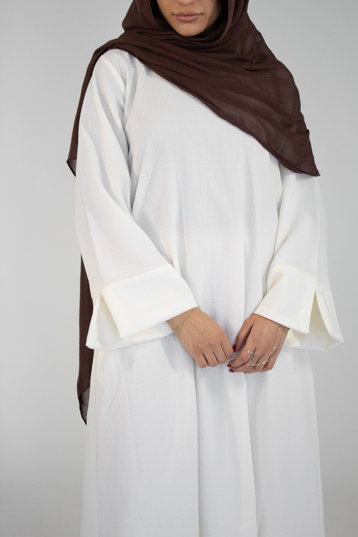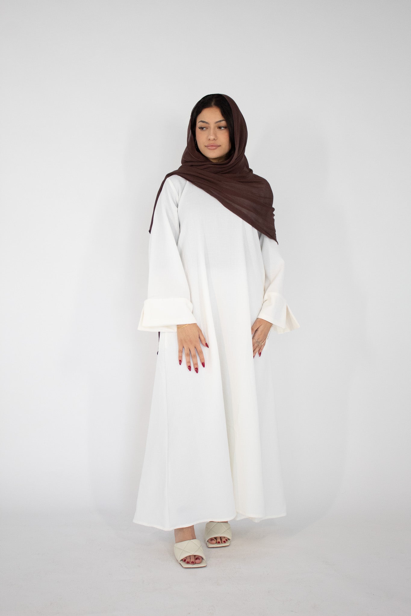 Whether you're attending Taraweeh prayers, hosting Iftar gatherings, or simply enjoying quiet moments of reflection, the Naima Linen Abaya is your go-to choice for a chic and modest Ramadan style.