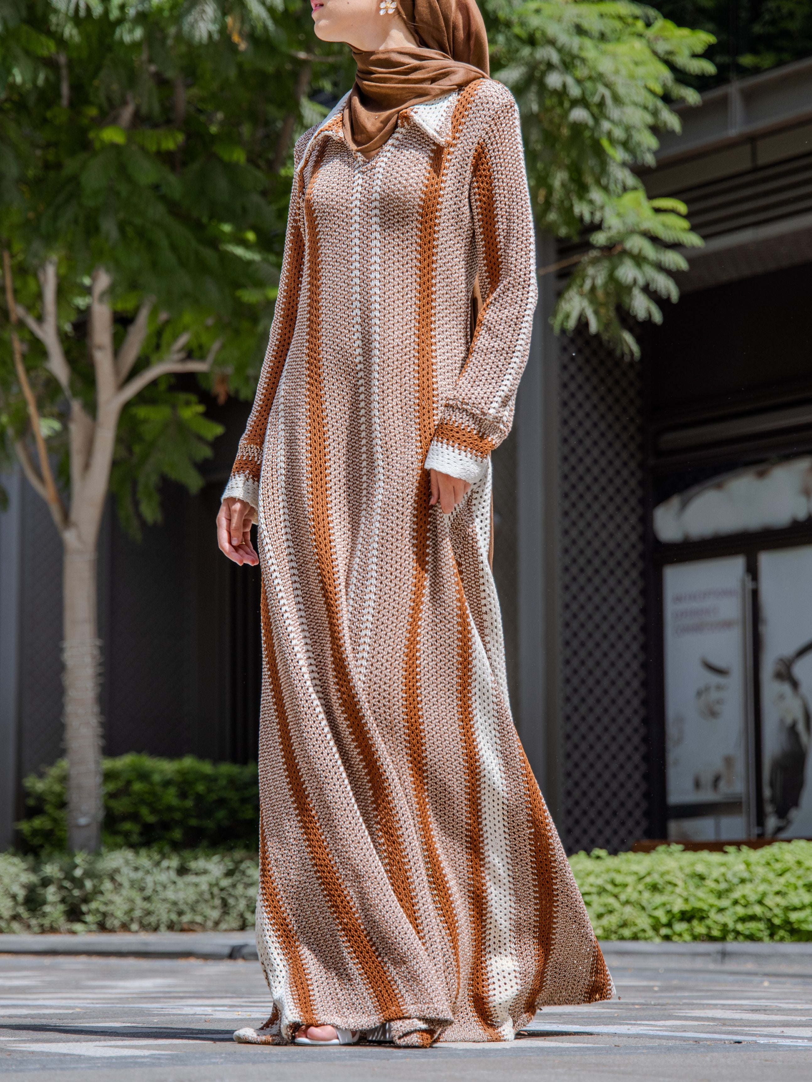 Brown Knitted Maxi Dress
