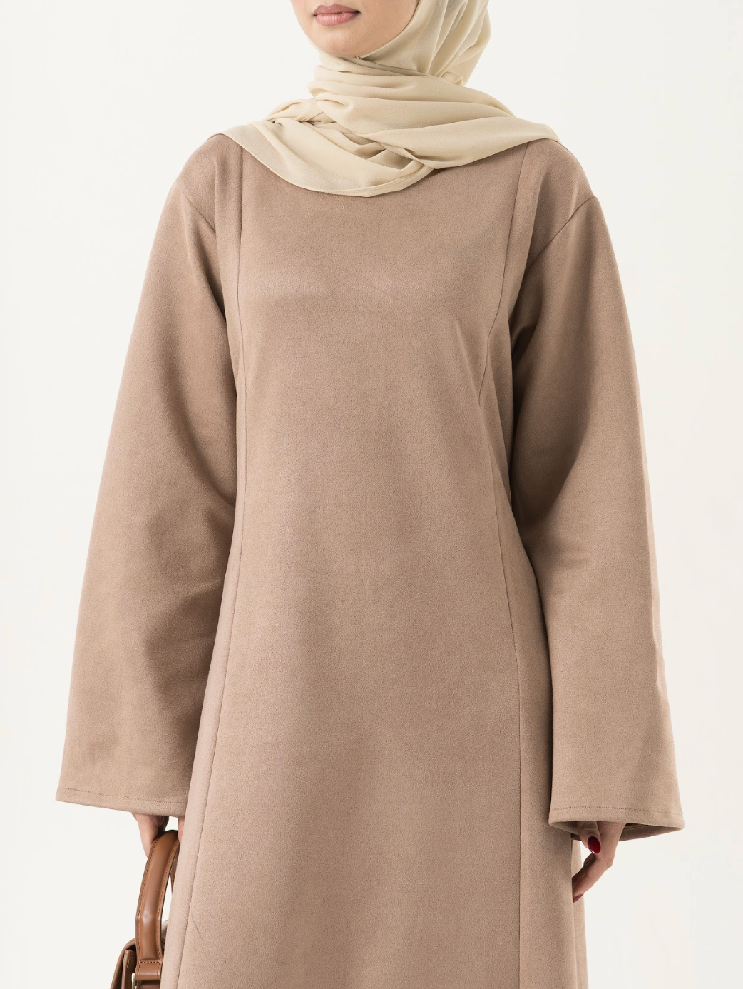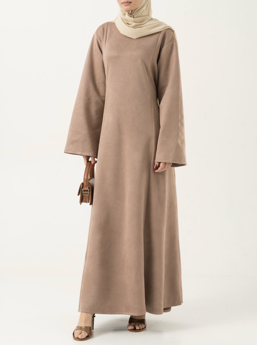 The modest neckline, relaxed sleeves, and graceful A-line flow make it an effortless choice for everyday wear, events, and elevated evenings.