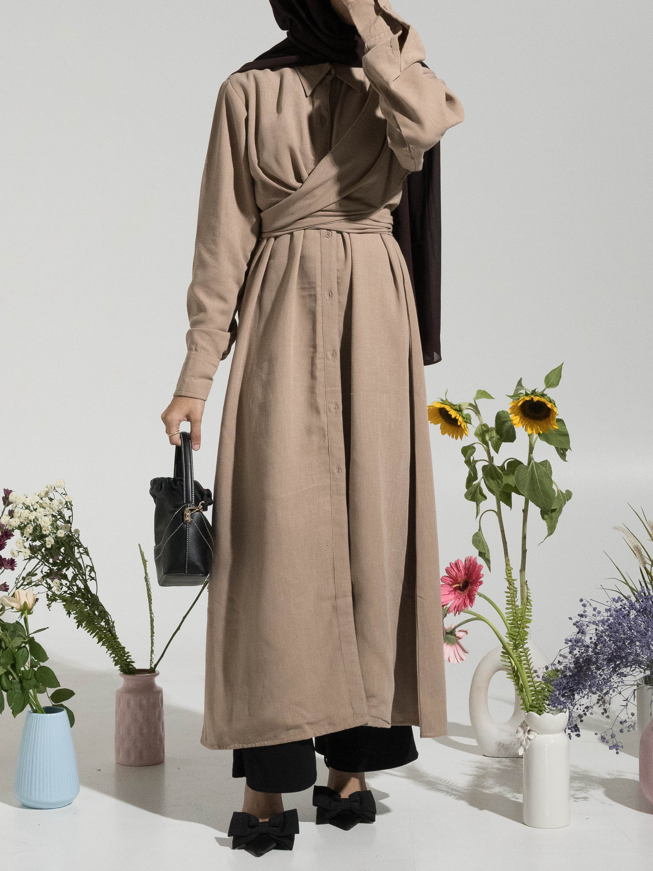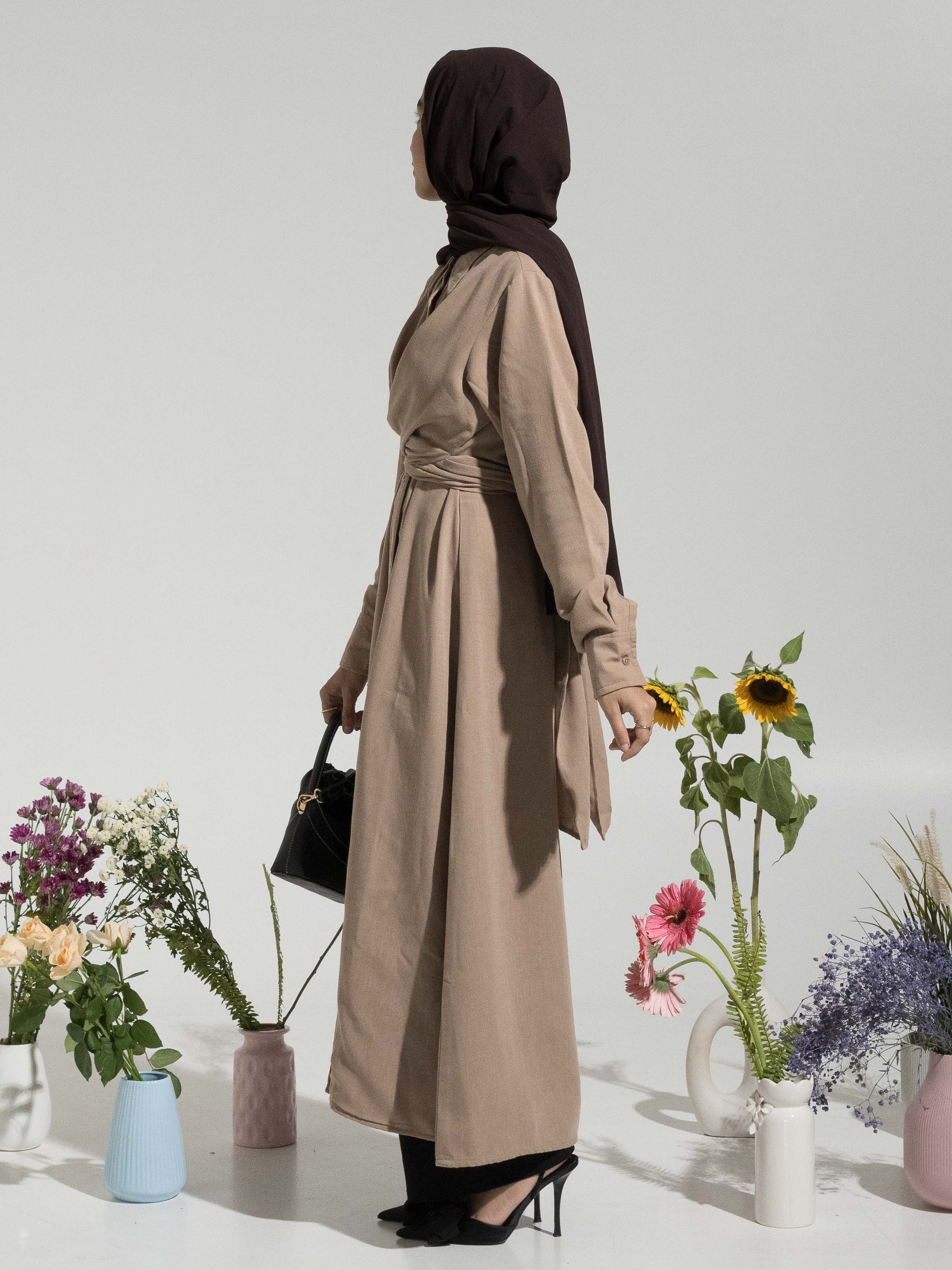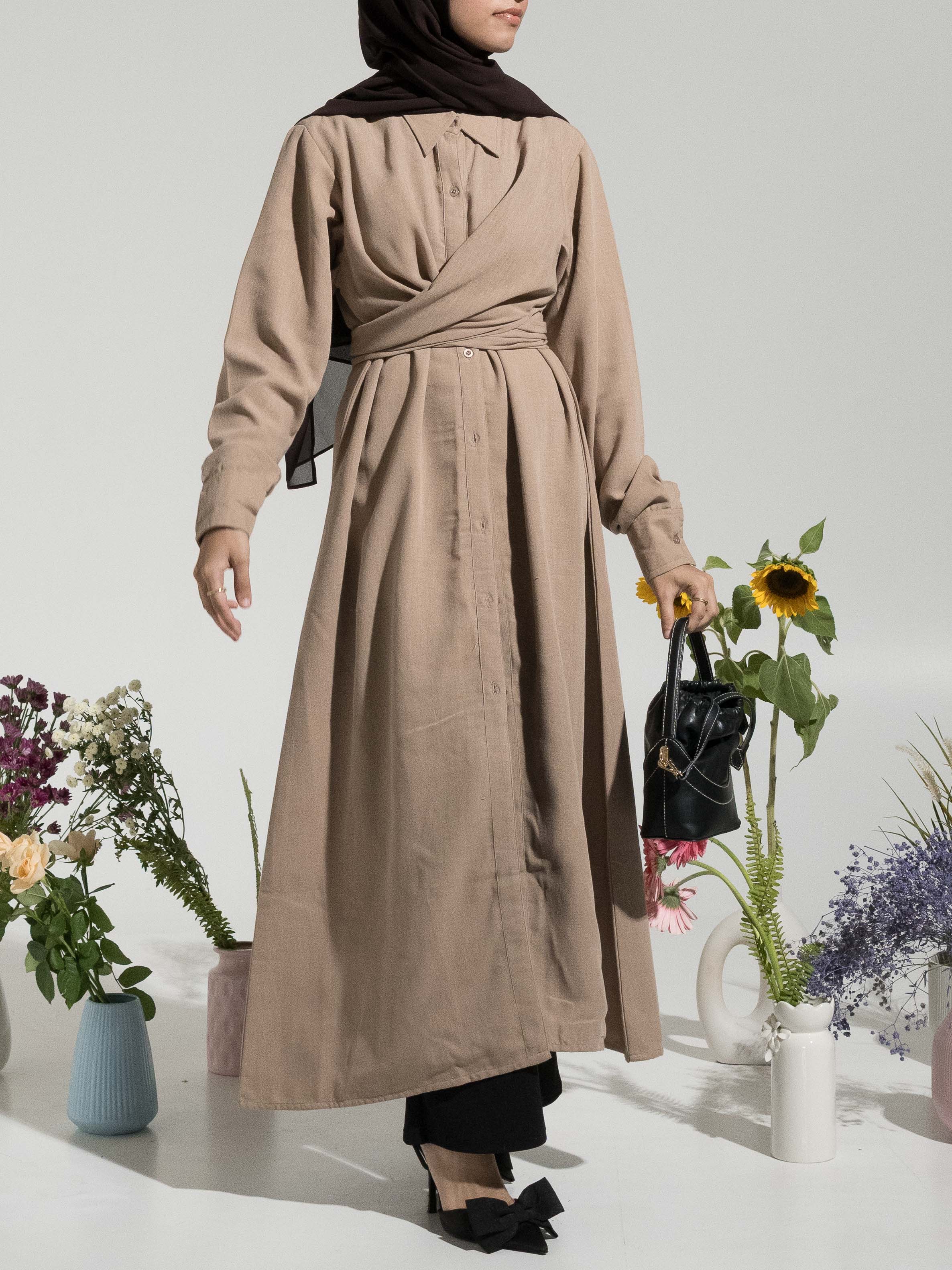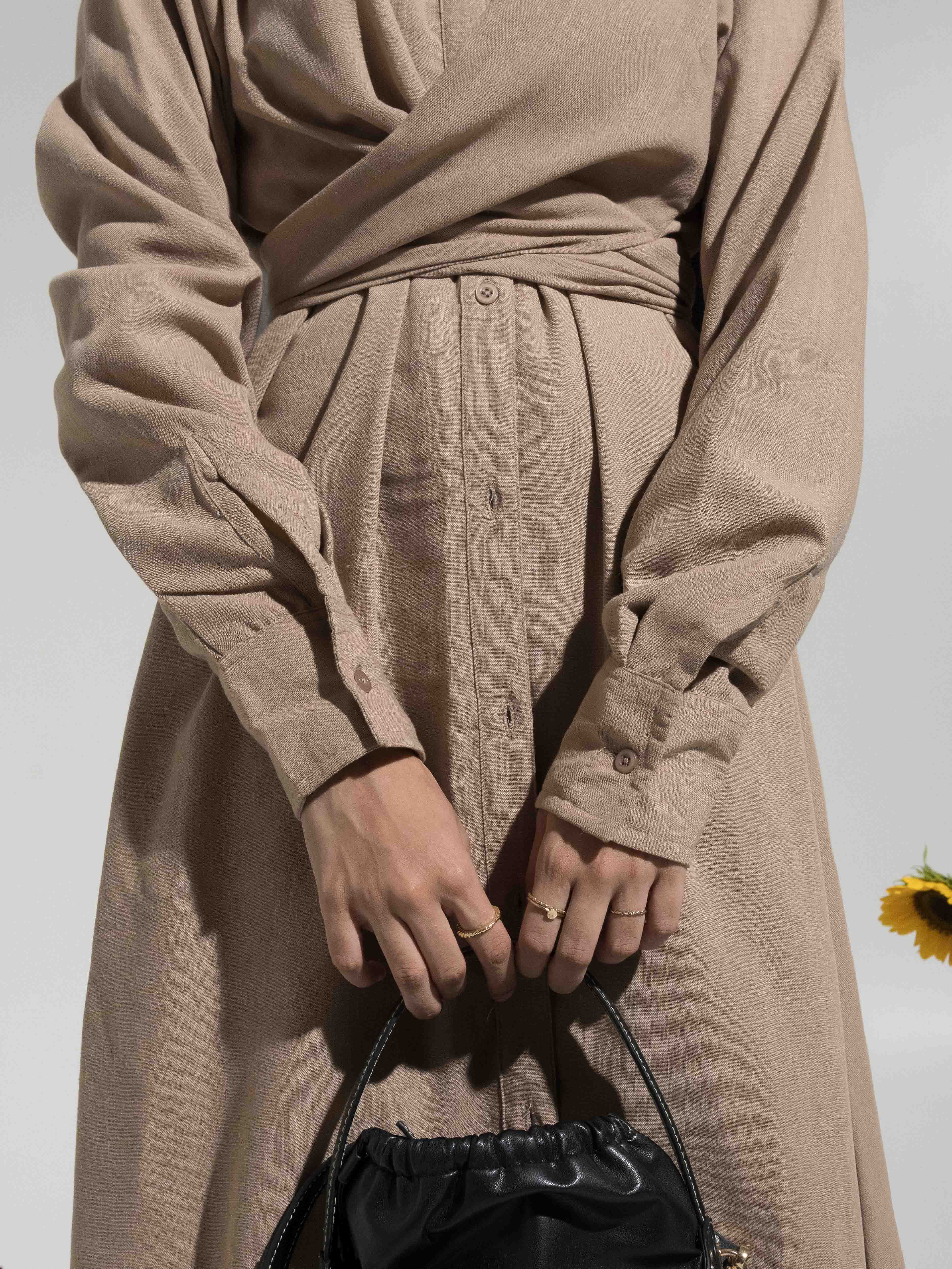 Sadie Tie-Up Shirt Dress - Beige