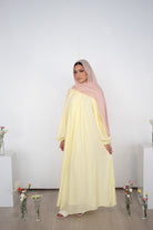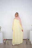 A romantic take on effortless elegance — the Warda Dress is a timeless piece with refined details and a graceful flow. Designed for breathable comfort, this dress features balloon sleeves with an elastic wrist, a ruffled high neck, and a button enclosure at the back. Each dress comes with a matching inner for added coverage, making it a versatile choice for both gatherings and everyday wear.