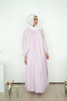 A romantic take on effortless elegance — the Warda Dress is a timeless piece with refined details and a graceful flow. Designed for breathable comfort, this dress features balloon sleeves with an elastic wrist, a ruffled high neck, and a button enclosure at the back. Each dress comes with a matching inner for added coverage, making it a versatile choice for both gatherings and everyday wear.