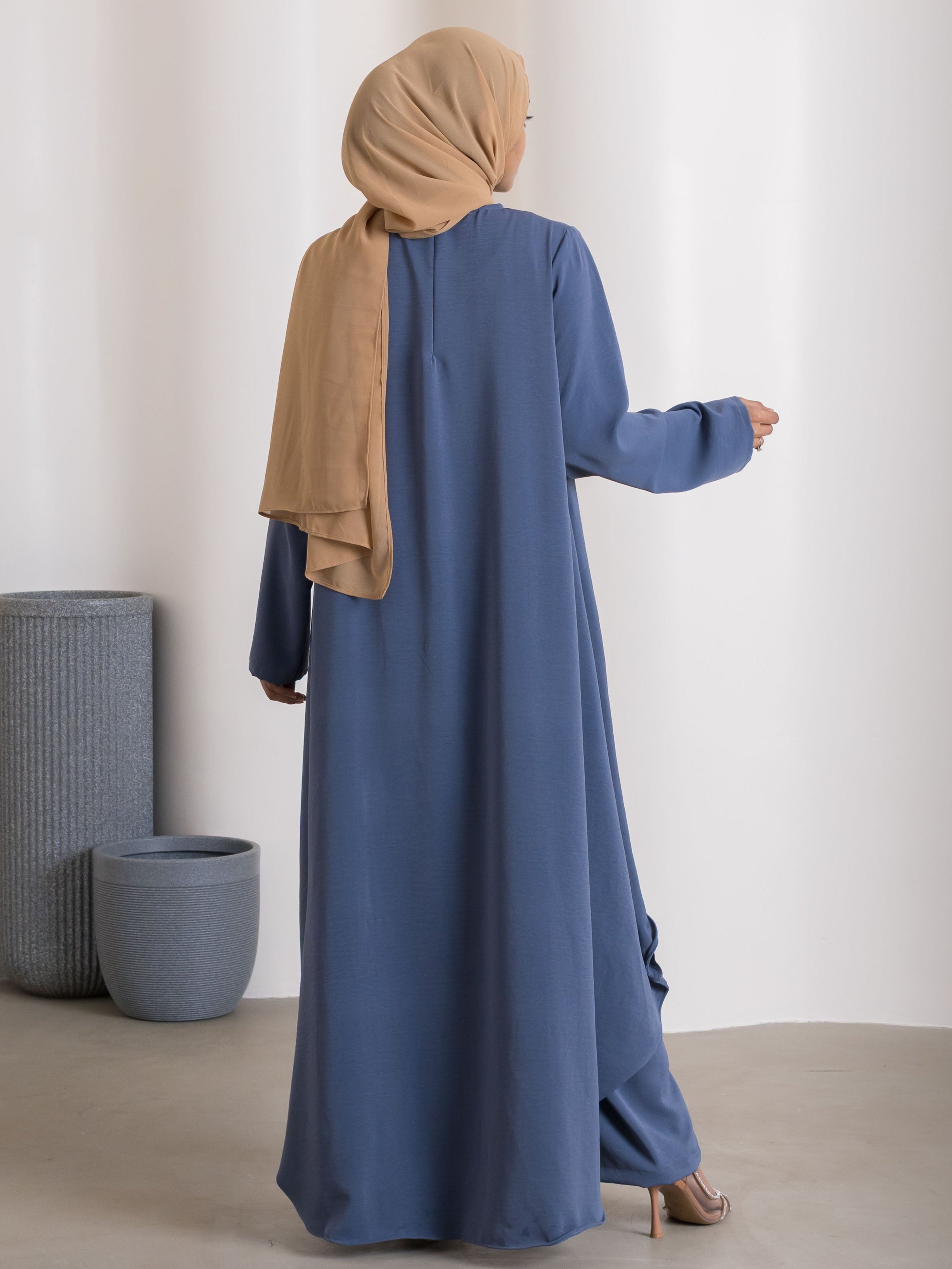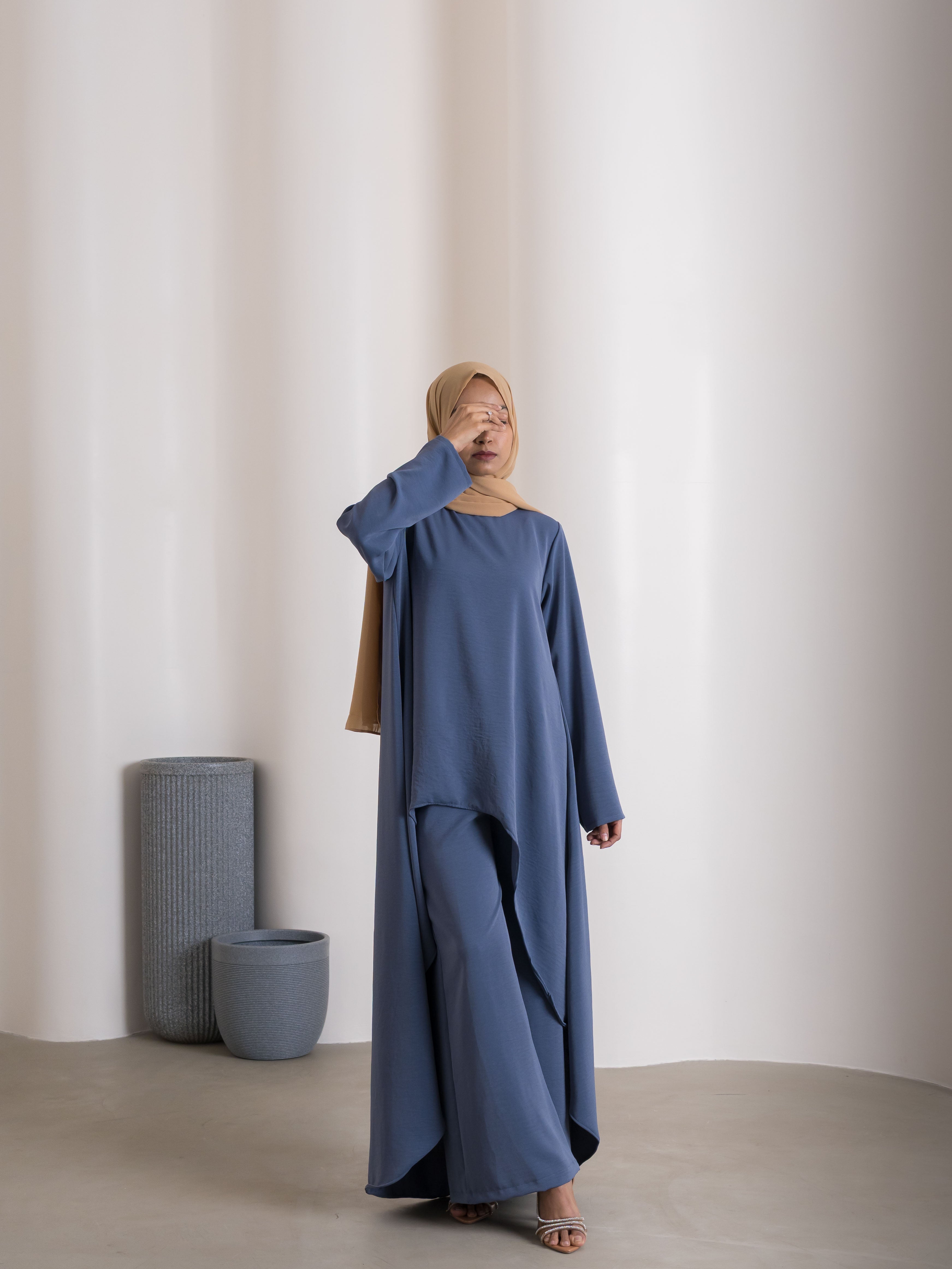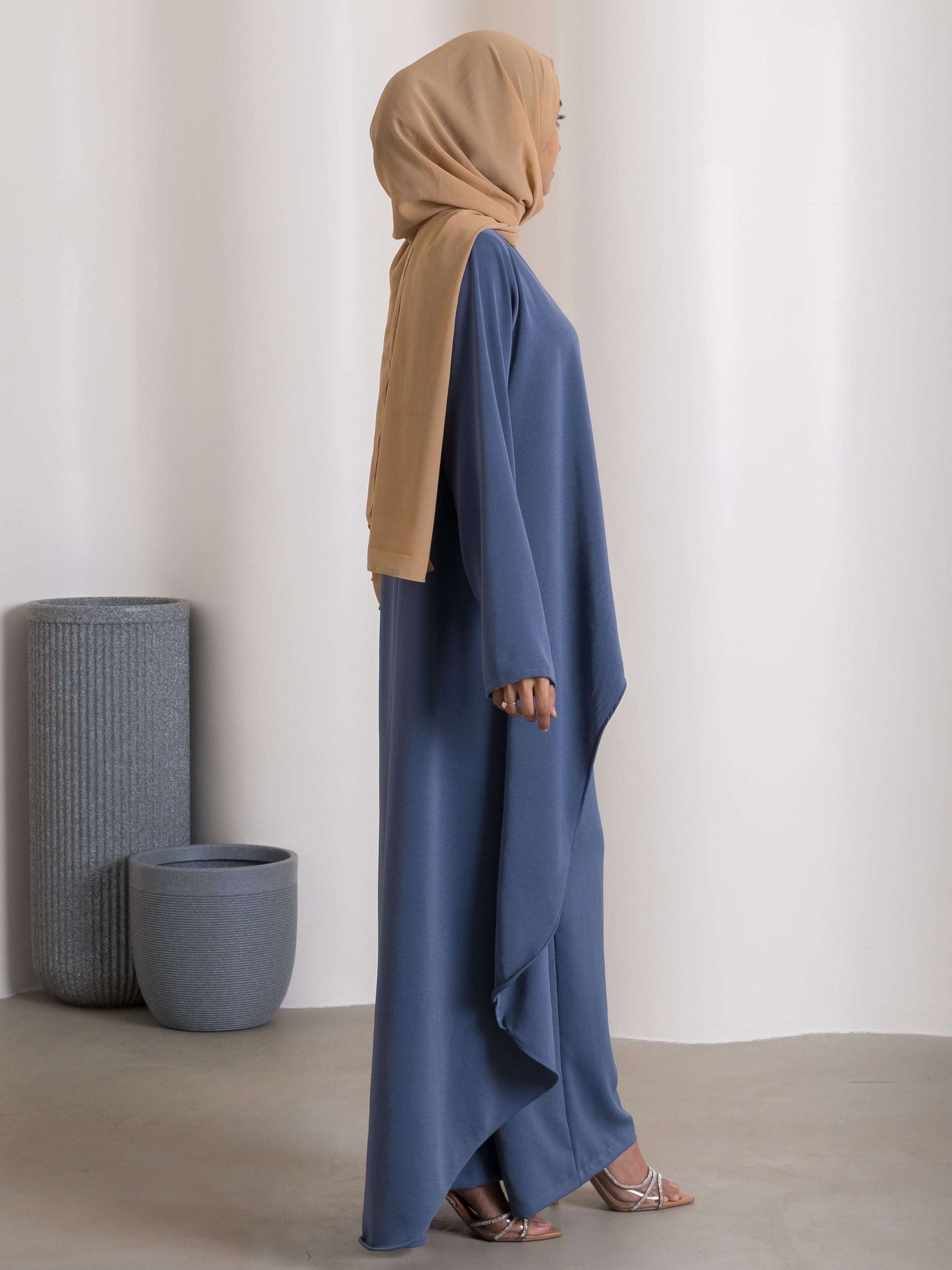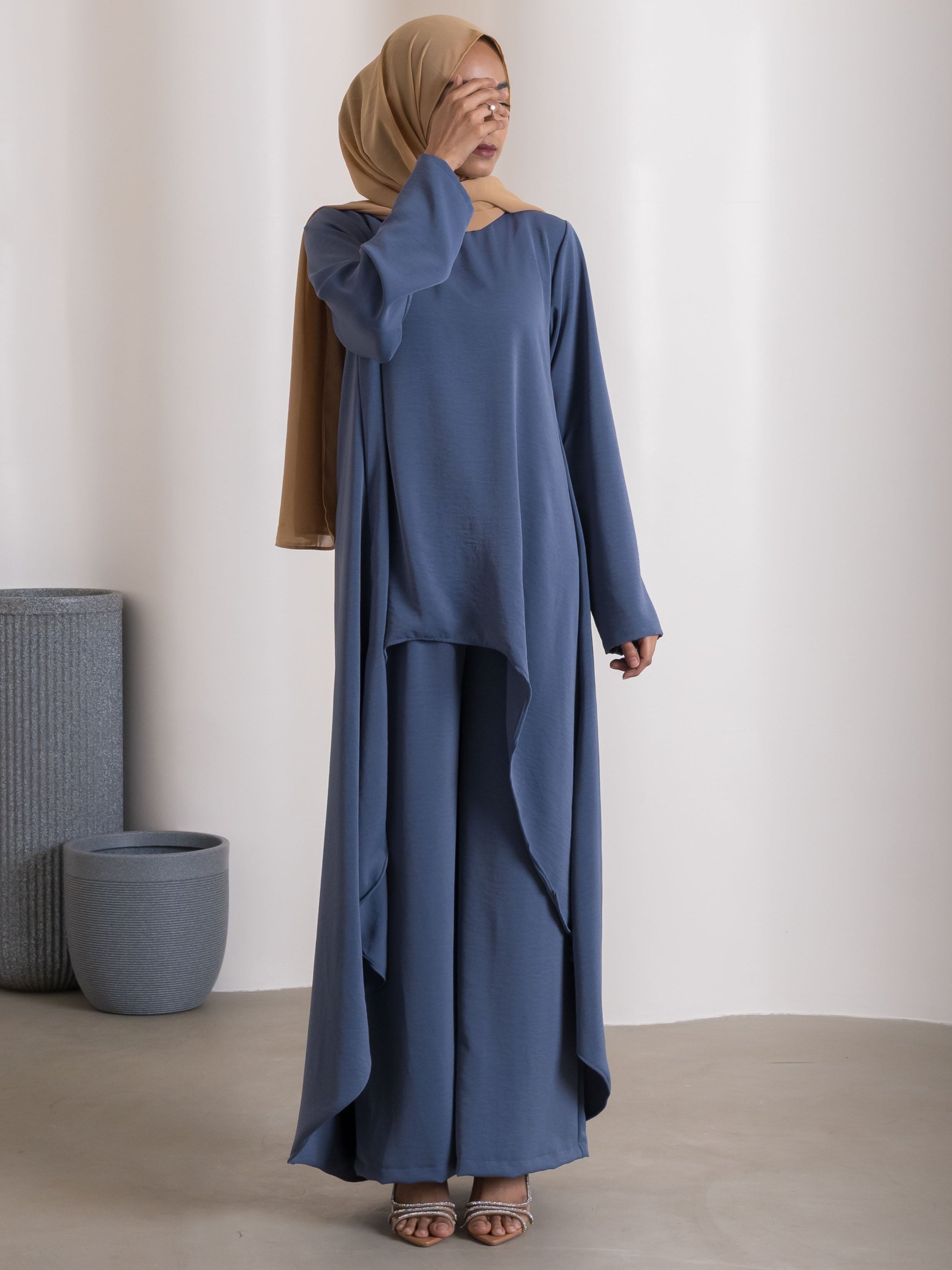 The Ayat Co-Ord Set is a perfect fusion of elegance and contemporary style. Designed with a flowy cape-cut silhouette, it drapes effortlessly, creating a graceful and refined look. Paired with matching pants, this set offers both comfort and sophistication, making it a statement piece for any occasion.