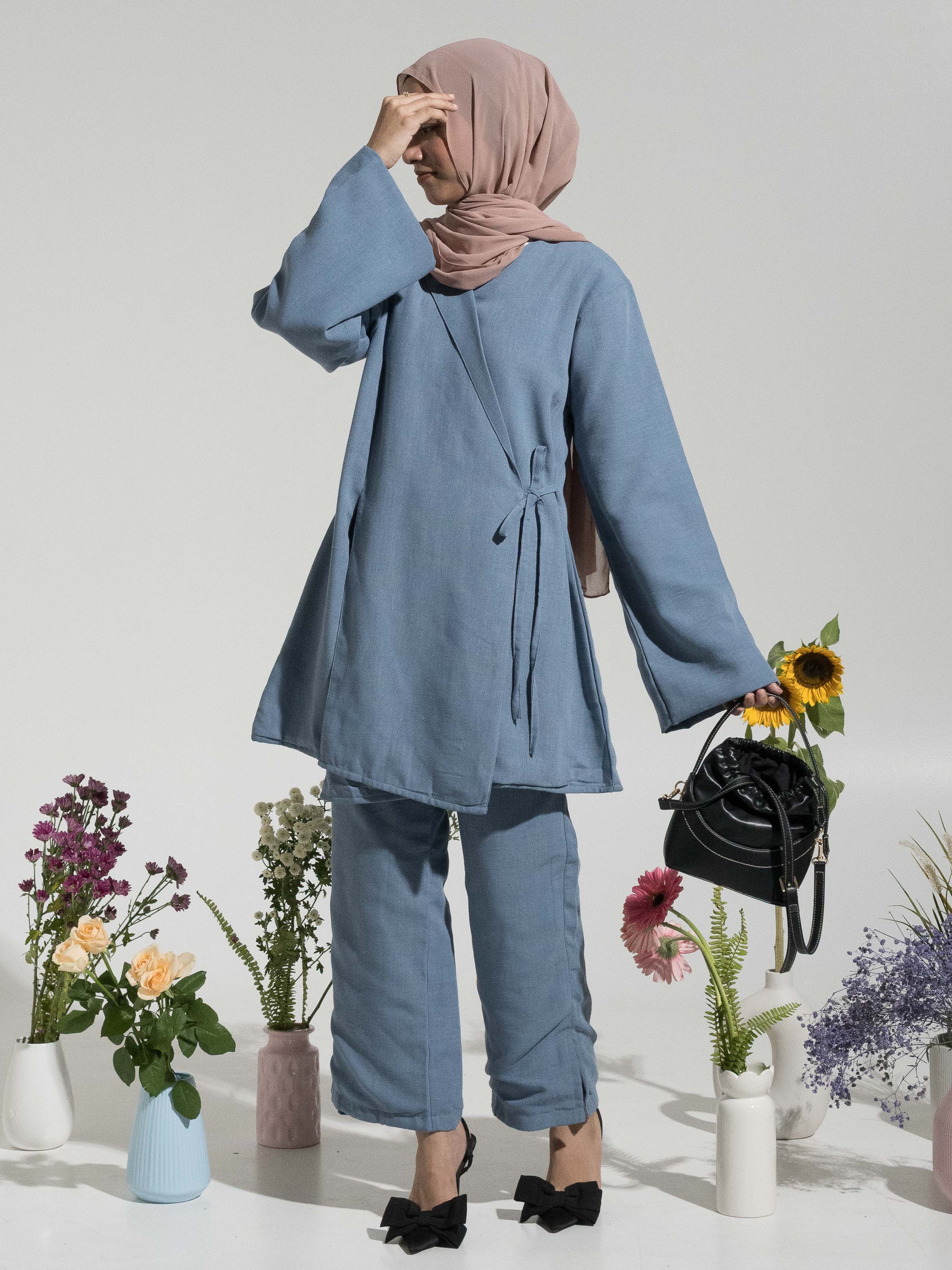 The Ella Wrap Co-ord Set is a unique and chic summer essential—lightweight, breathable, and effortlessly stylish. Featuring a wrap-style top with a graceful side tie-up and matching pants, it’s perfect for staying cool while looking put-together.