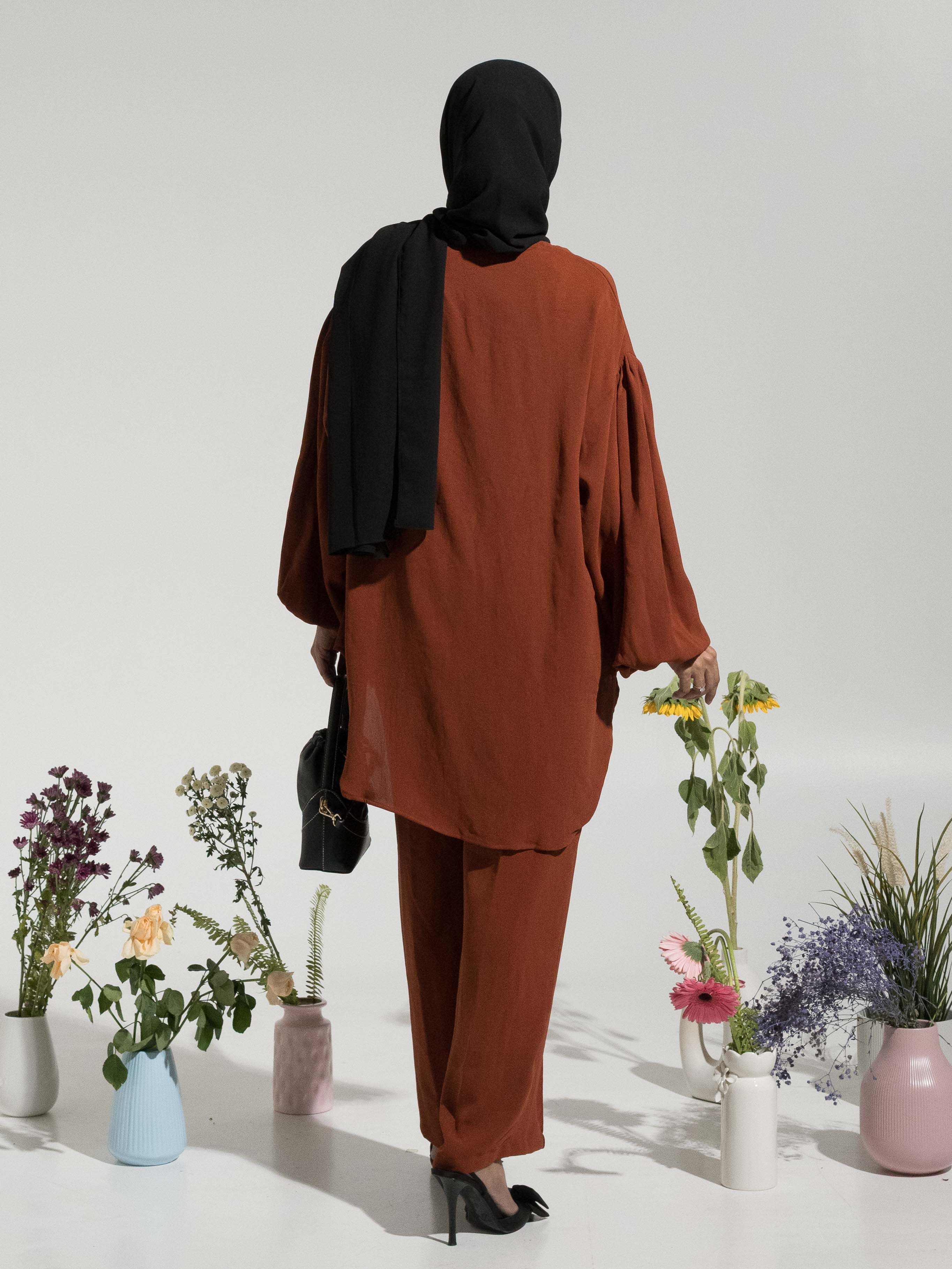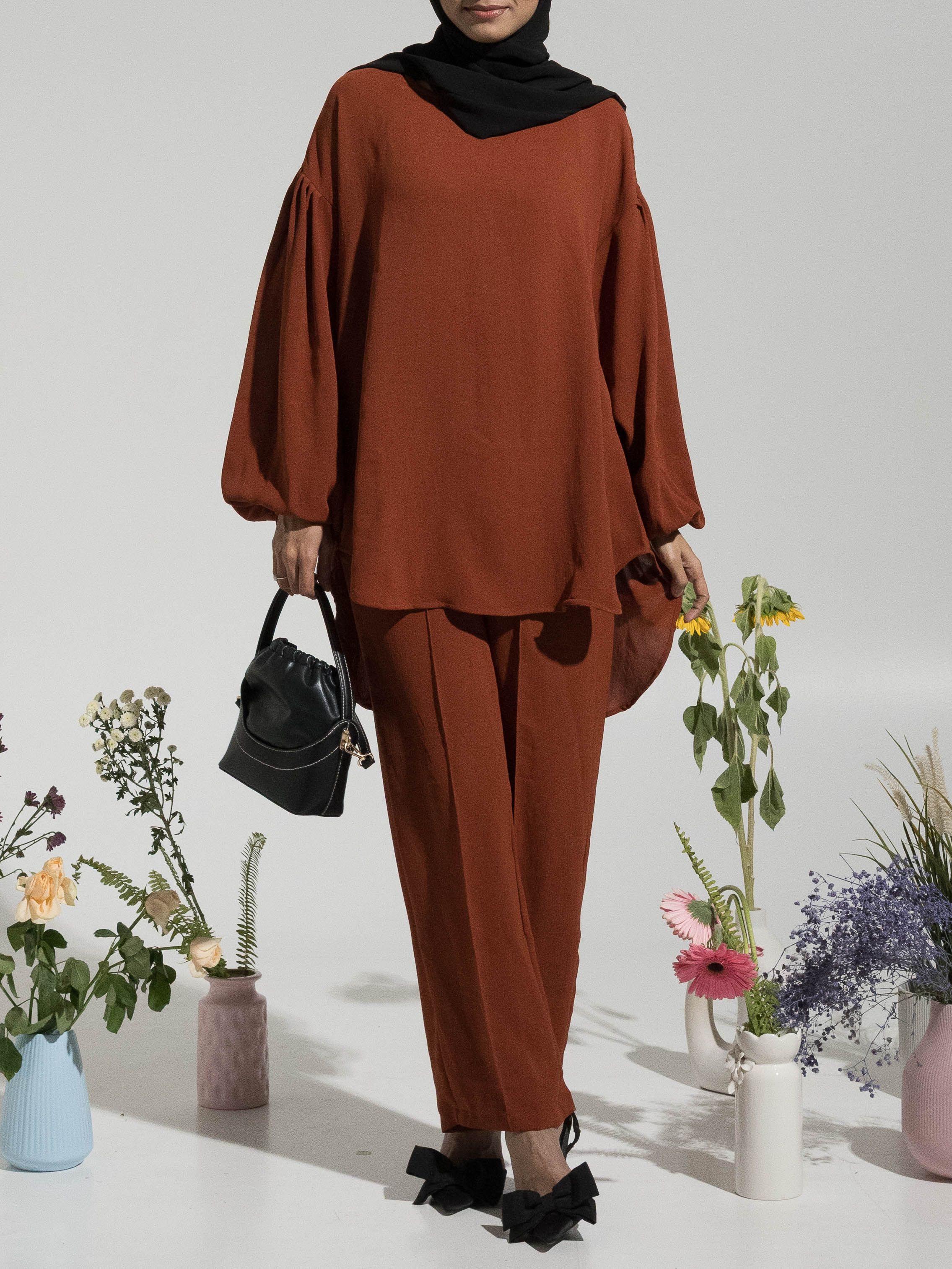 The Jenna Matching Set is a simple yet elegant ensemble, perfect for summer days. Featuring soft puffed sleeves and a clean, minimal design, it offers a chic and airy silhouette that keeps you cool and stylish with ease.