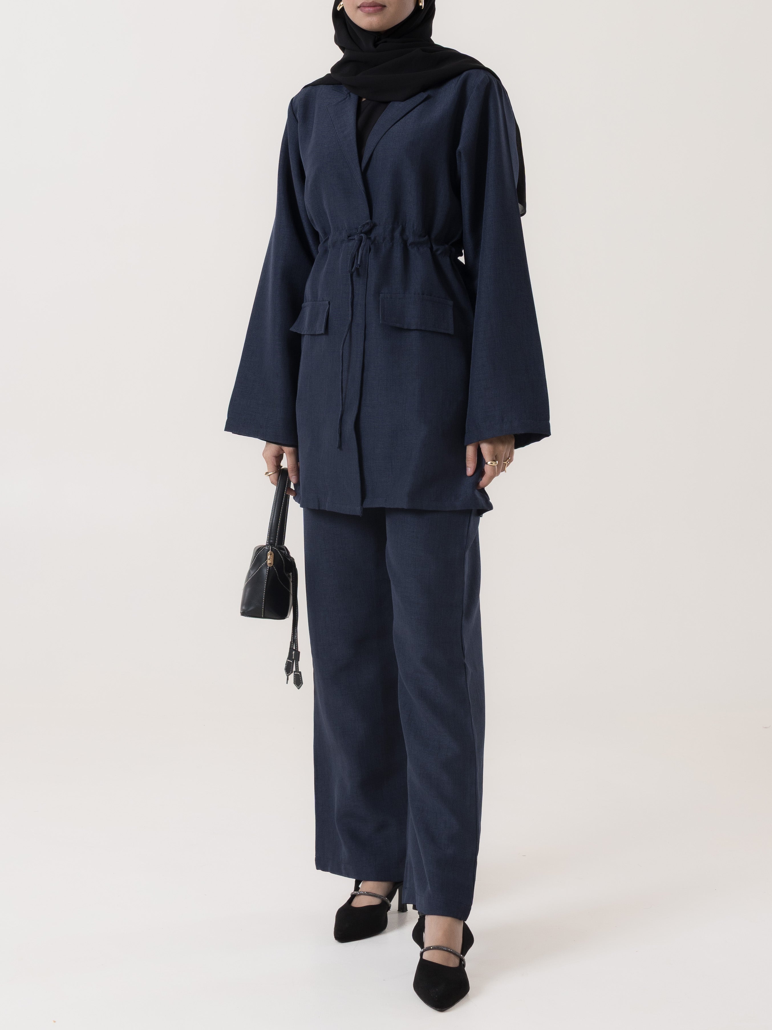 Make a statement in this linen blend co-ord set featuring a cinched waist with a bow detail and a sleek blazer-inspired collar. A perfect mix of structure and flow, this versatile set transitions effortlessly from desk to dinner.