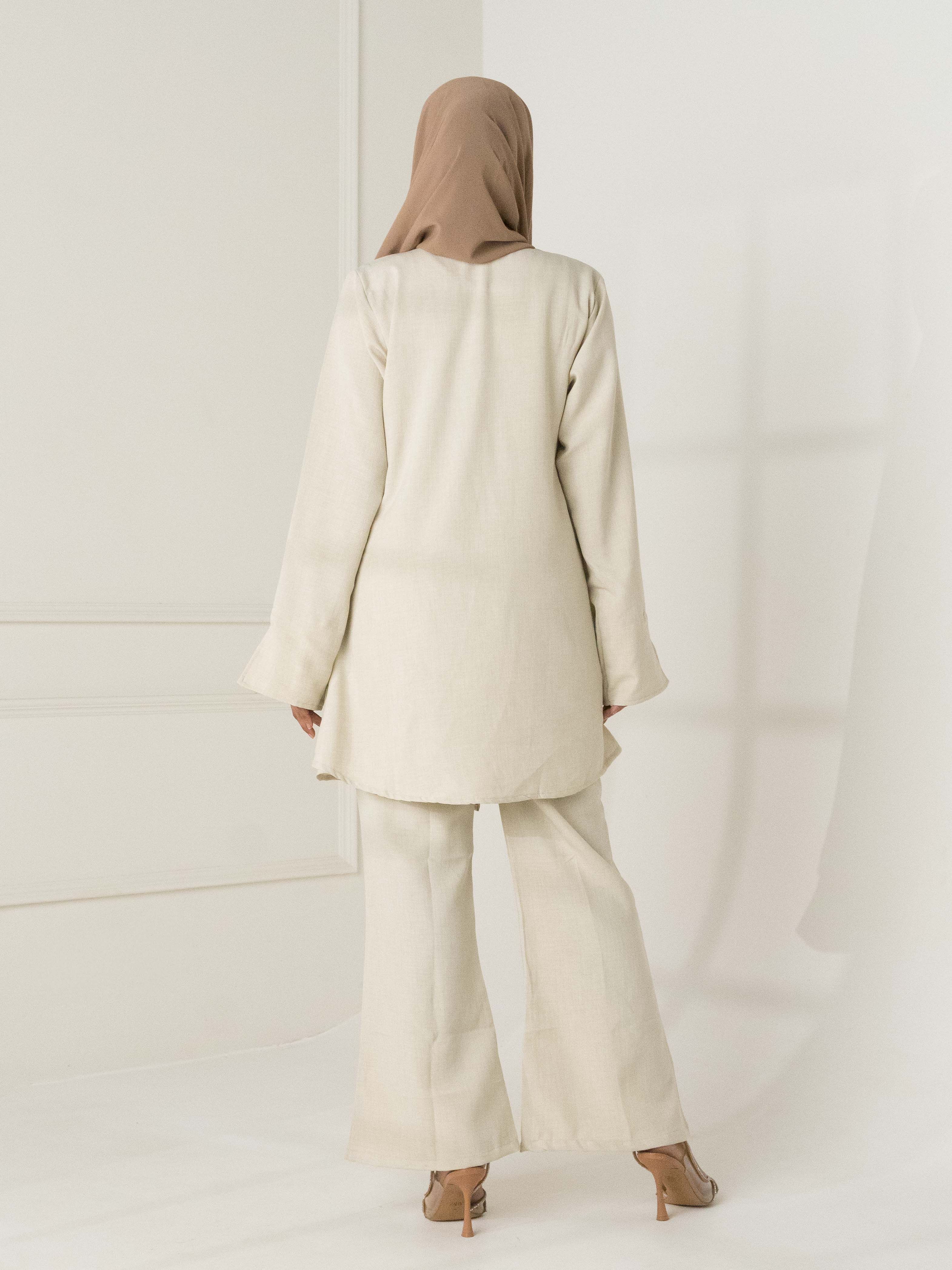 The Maha Wrap Co-Ord Set in Beige is the ultimate combination of elegance and comfort, making it a must-have addition to your wardrobe. This chic two-piece set features a wrap-style top with a flattering, adjustable tie closure, ensuring a customizable fit that flatters your figure while maintaining a modest silhouette. Whether you're dressing for a brunch outfit or a polished event, this wrap co-ord set offers effortless style and versatility. Embrace sophistication with this must-have co-ord set.