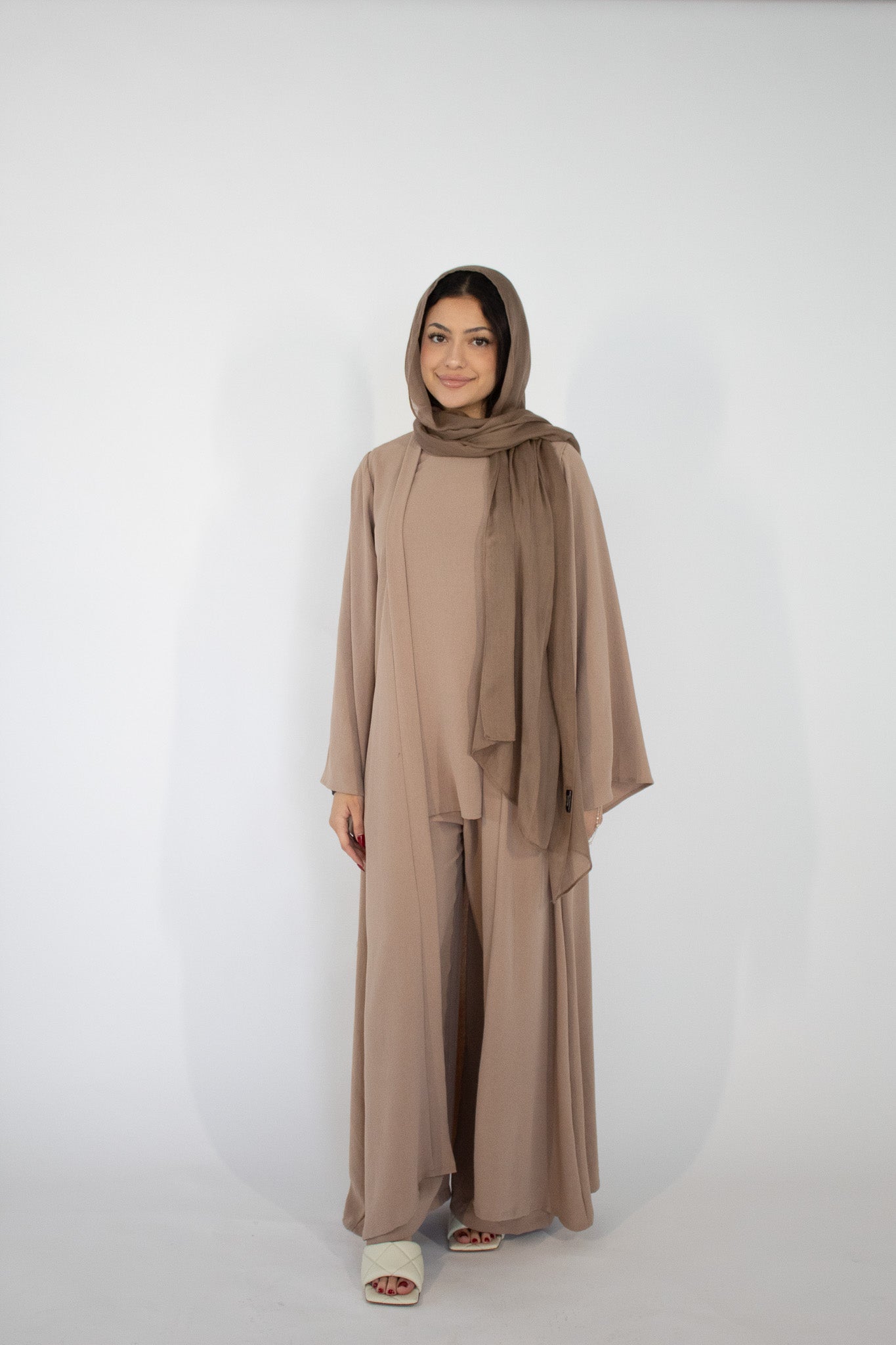 Elevate your style with the Aiman 3-Piece Set, a versatile and elegant addition to your modest wardrobe. Designed for comfort and sophistication, this set is crafted from premium textured crepe fabric, offering a luxurious feel and a flawless drape that ensures you look and feel your best.
