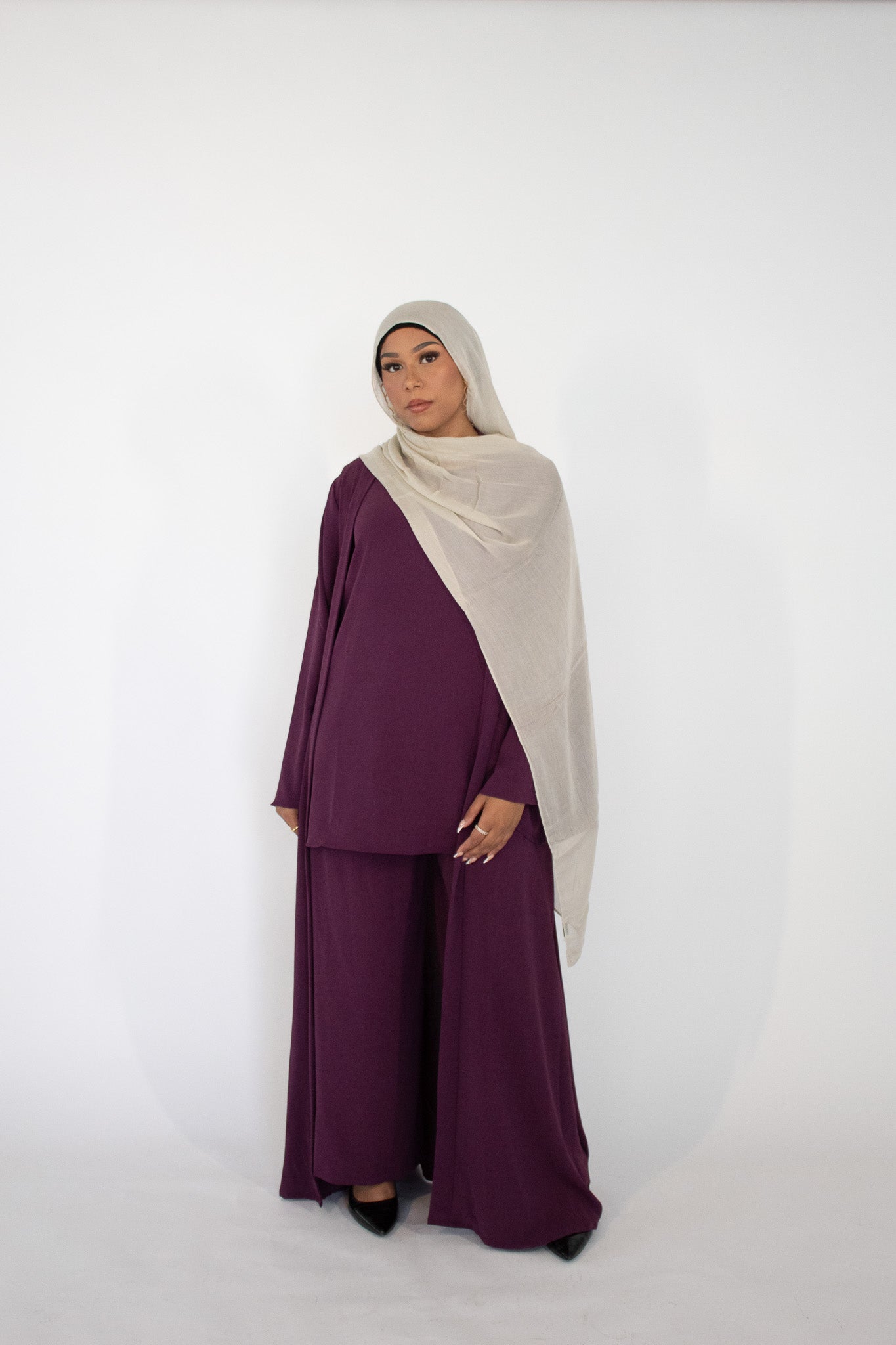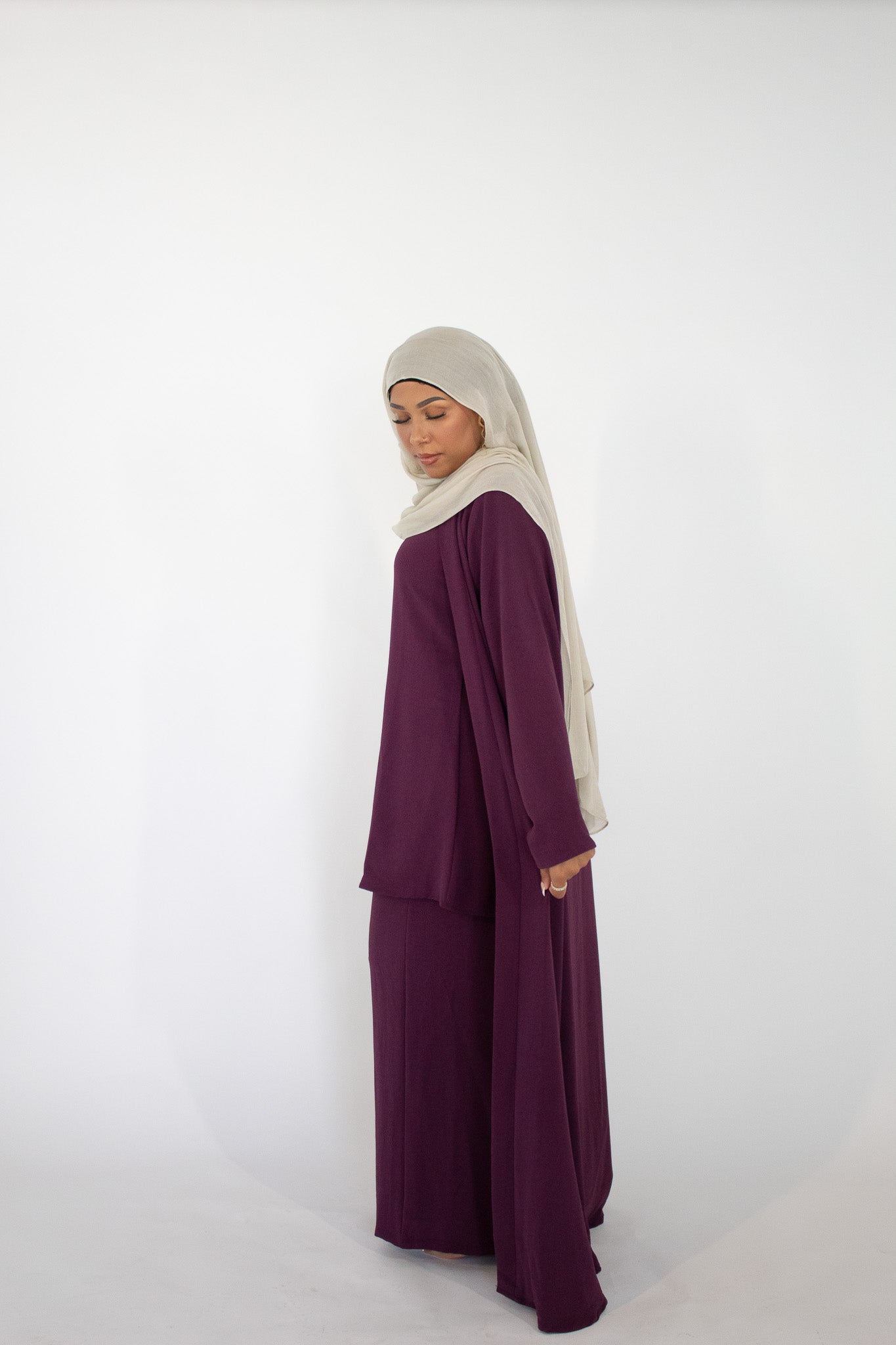 Elevate your style with the Aiman 3-Piece Set, a versatile and elegant addition to your modest wardrobe. Designed for comfort and sophistication, this set is crafted from premium textured crepe fabric, offering a luxurious feel and a flawless drape that ensures you look and feel your best.