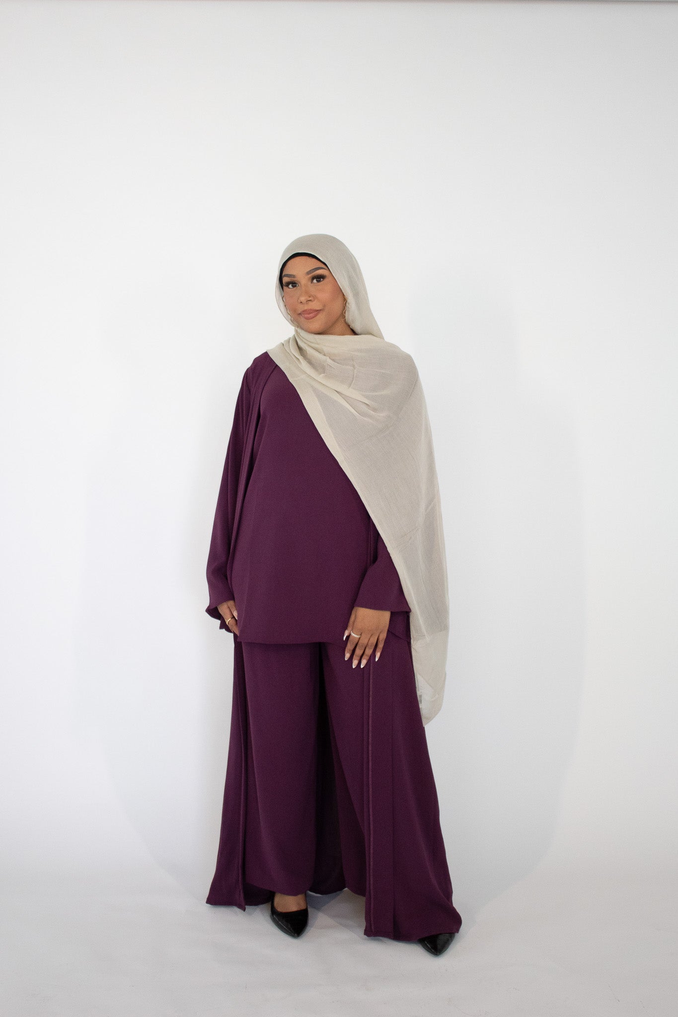 Whether you're dressing up for a formal event, celebrating Ramadan, or simply embracing everyday elegance, the Aiman 3-Piece Set is your go-to choice for a polished and modest look.