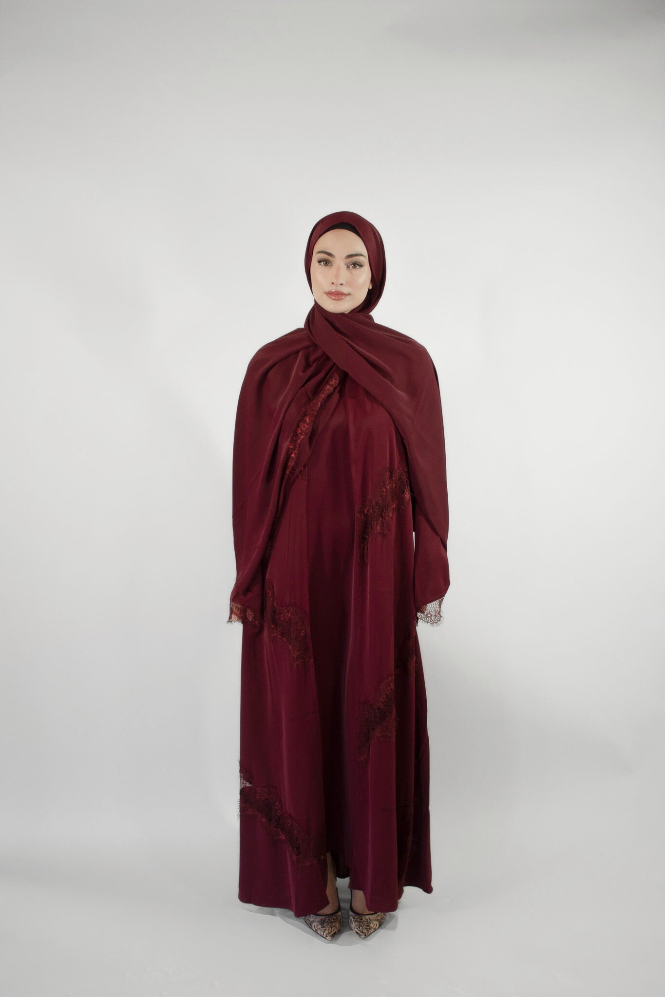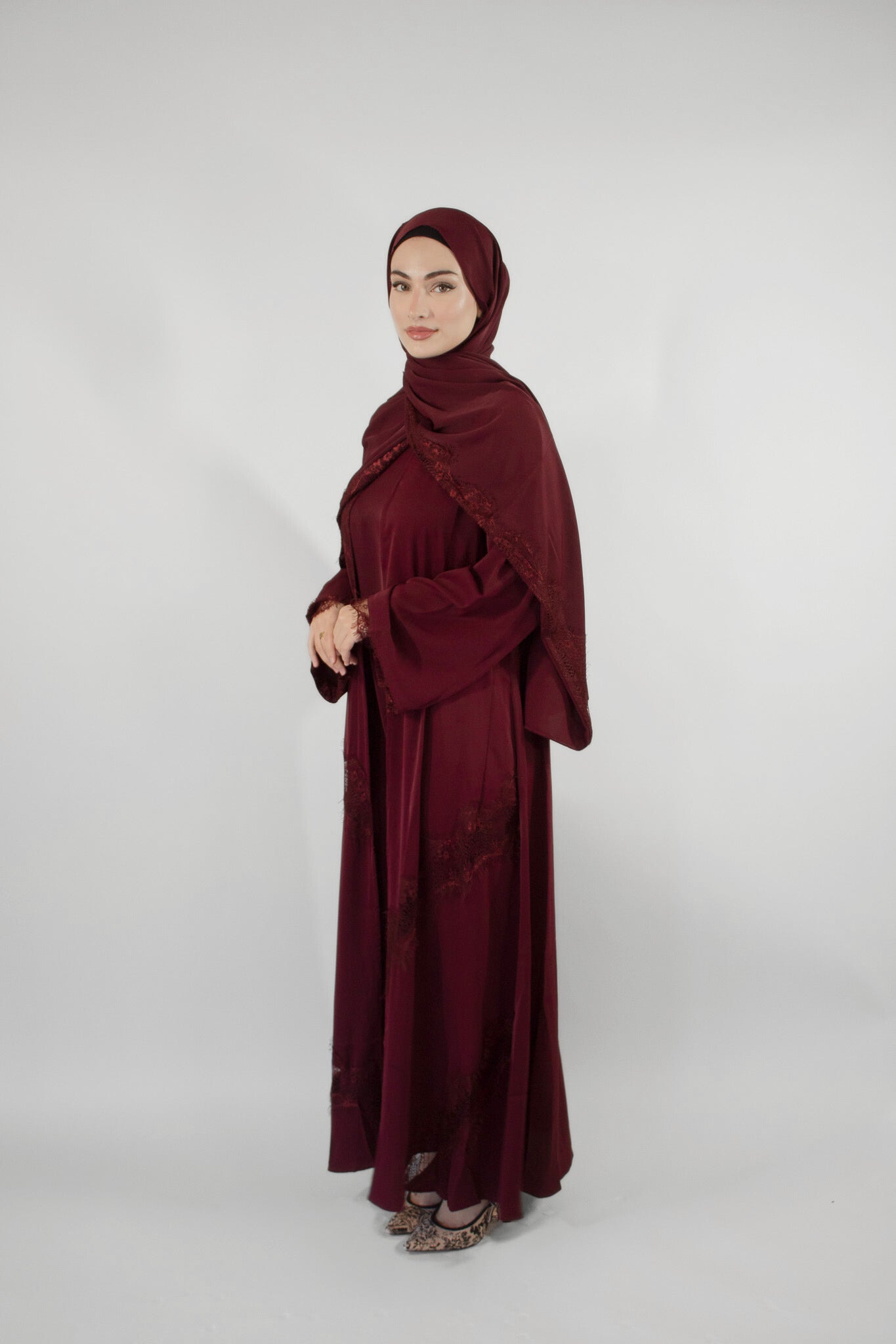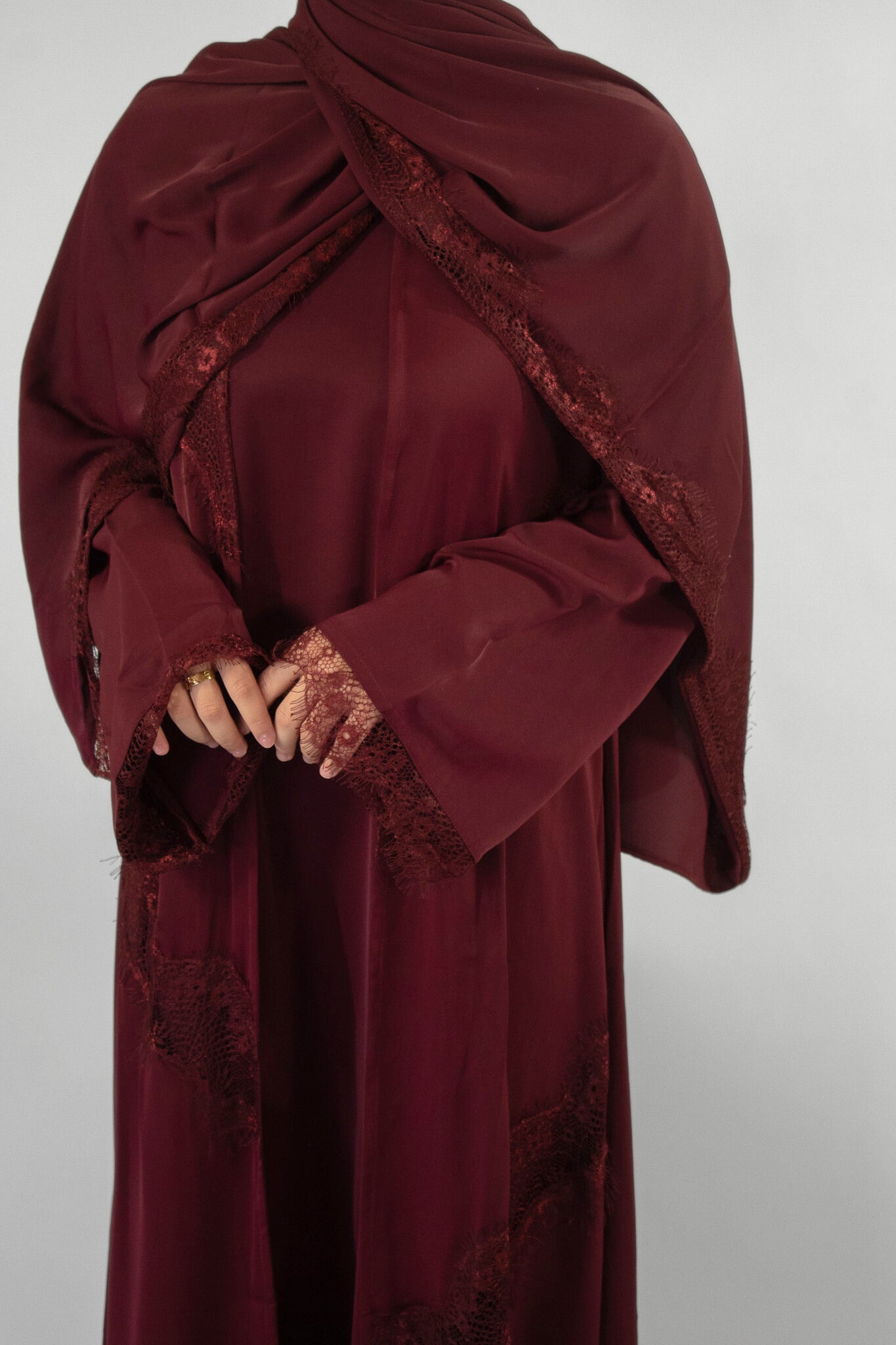 Nadiya Lace Abaya - Maroon