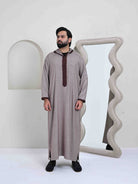 The Moroccan Hoodie Thobe is inspired by the traditional Moroccan Djellabba, reinterpreted for everyday wear with a relaxed and contemporary feel. Designed with a clean silhouette and subtle detailing, this Jubba / Kandura balances cultural influence with modern comfort. Crafted from a cotton–linen blend, the fabric features a raw linen texture that adds character and an authentic, natural finish, while maintaining a lightweight yet structured feel suitable for daily wear as well as festive occasions. Finished with Moroccan embroidery near the neckline, this thobe delivers understated elegance with functional style.