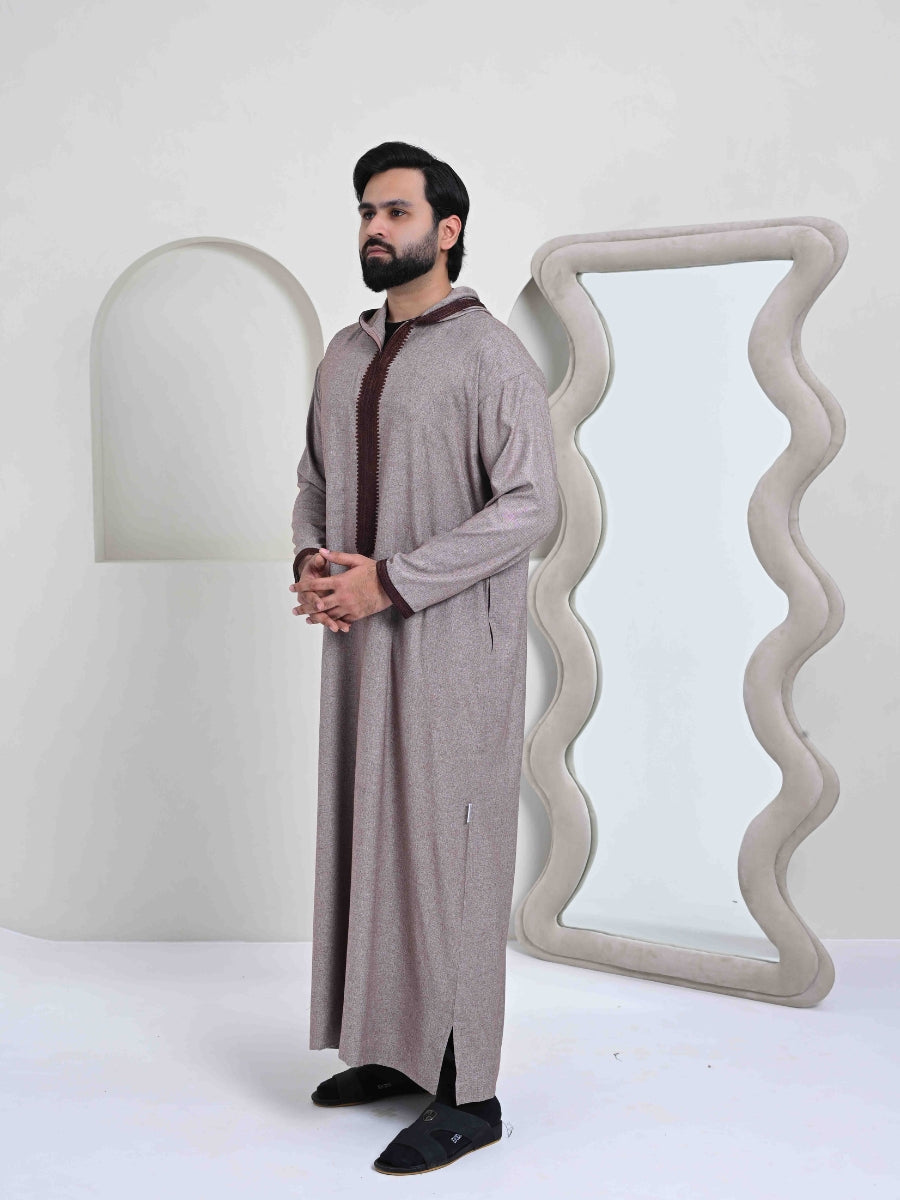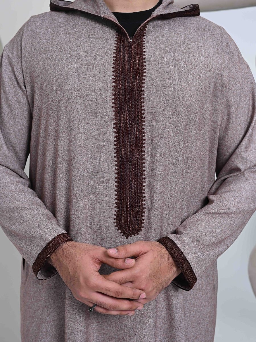 Moroccan Hoodie Thobe - Brown