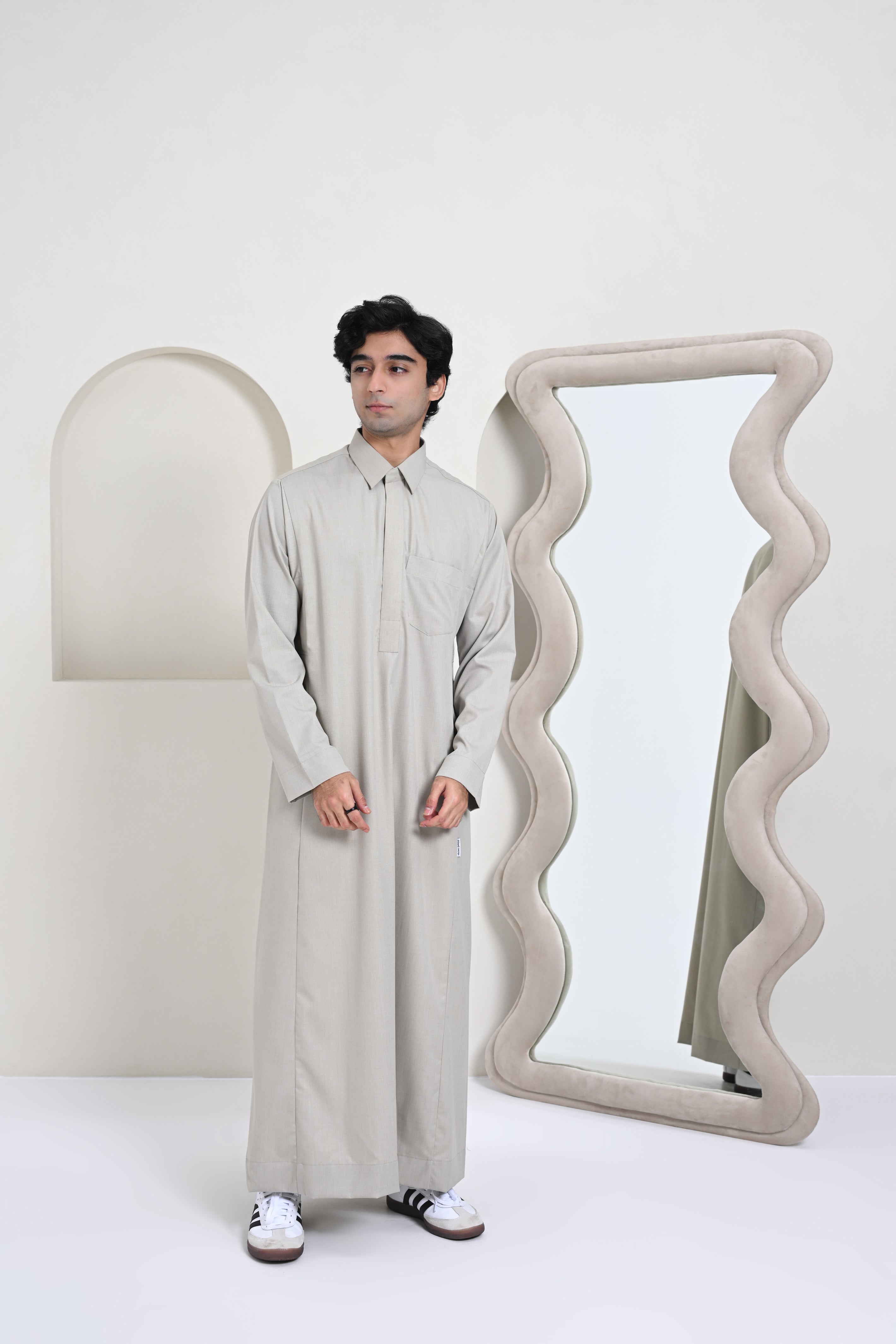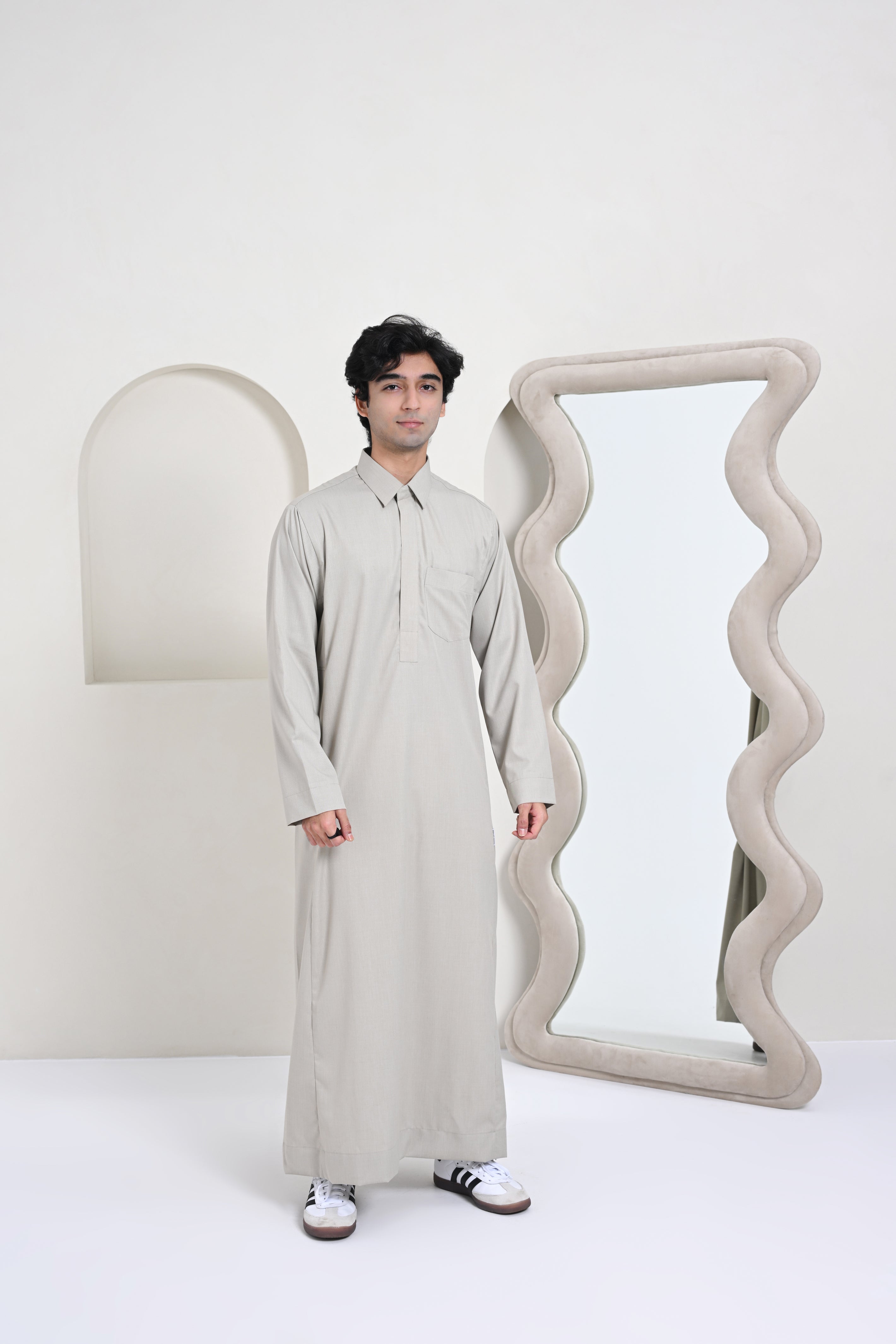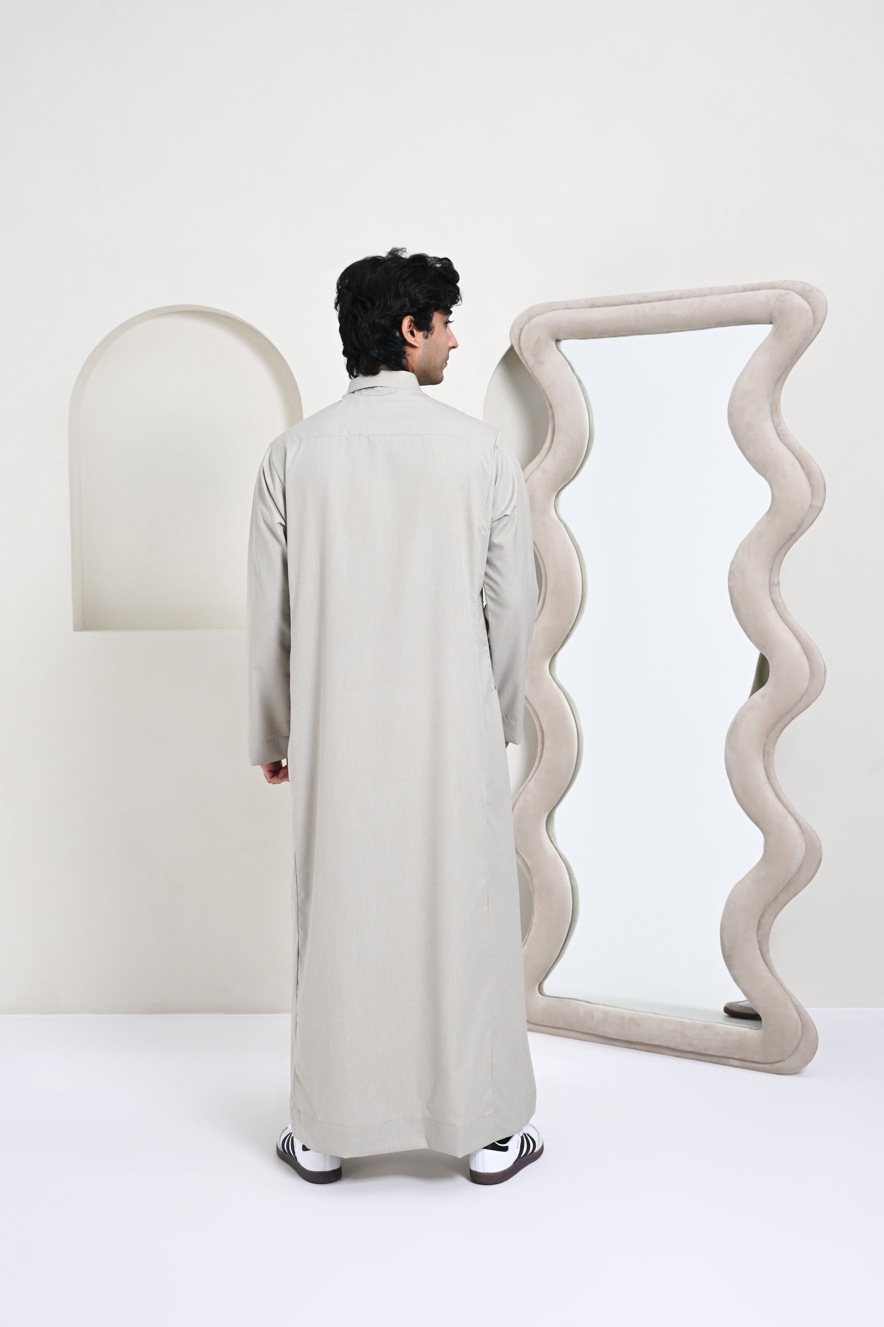 The Essential Qatar Thobe is designed as a true formal wardrobe essential, offering a sharp and authoritative presence with uncompromising comfort. Tailored with a distinctive collar shape and a sturdy, well-defined structure, this Jubba / Kandura delivers a consistently formal look that holds its form throughout the day. Designed with a concealed zip closure finished with a snap button at the collar band, the neckline remains clean and refined while offering ease of wear. Crafted from premium spun cotton, the fabric stays breathable and comfortable, making it suitable even for warmer weather while maintaining its elevated appearance.