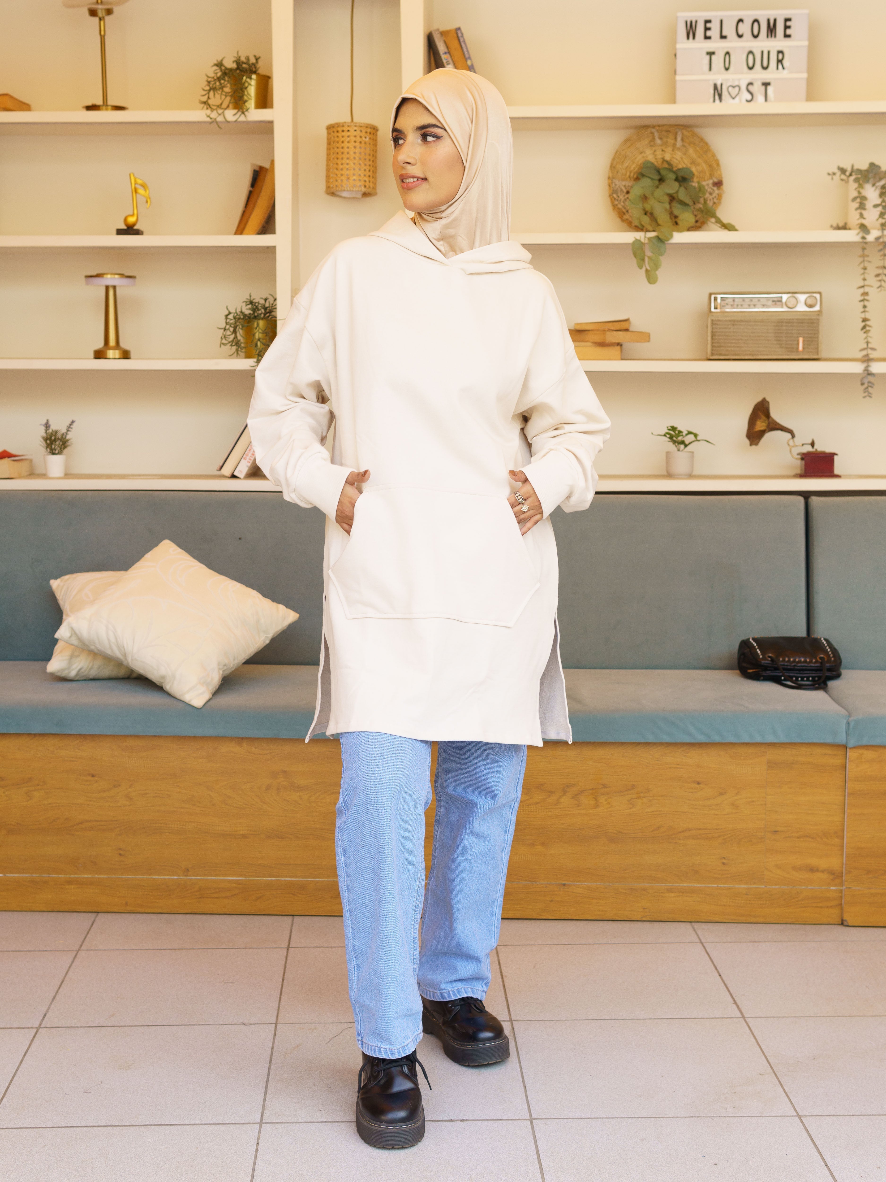 Introducing the ultimate winter essential - our cozy and stylish Off-White Hoodie! Stay warm, comfortable, and fashionable all season long with this unique design. With full sleeves and a snug fit, this hoodie provides the perfect blend of warmth and style. The attached hijab adds an extra layer of convenience, making it easier than ever to stay modest while staying cozy. Don't let the cold weather compromise your comfort or style - grab our Off White Hoodie today and experience winter wear like never before!