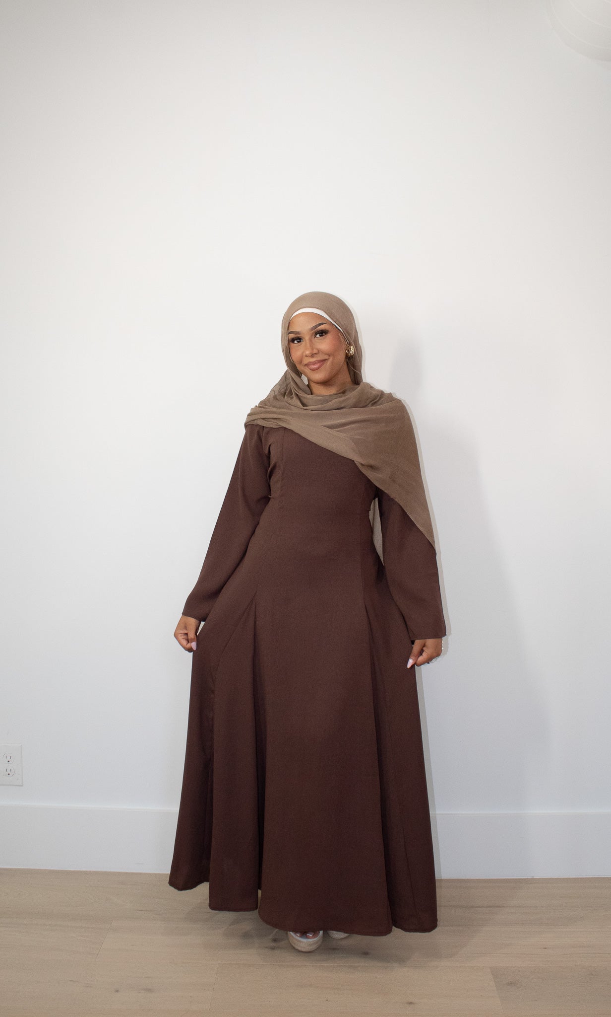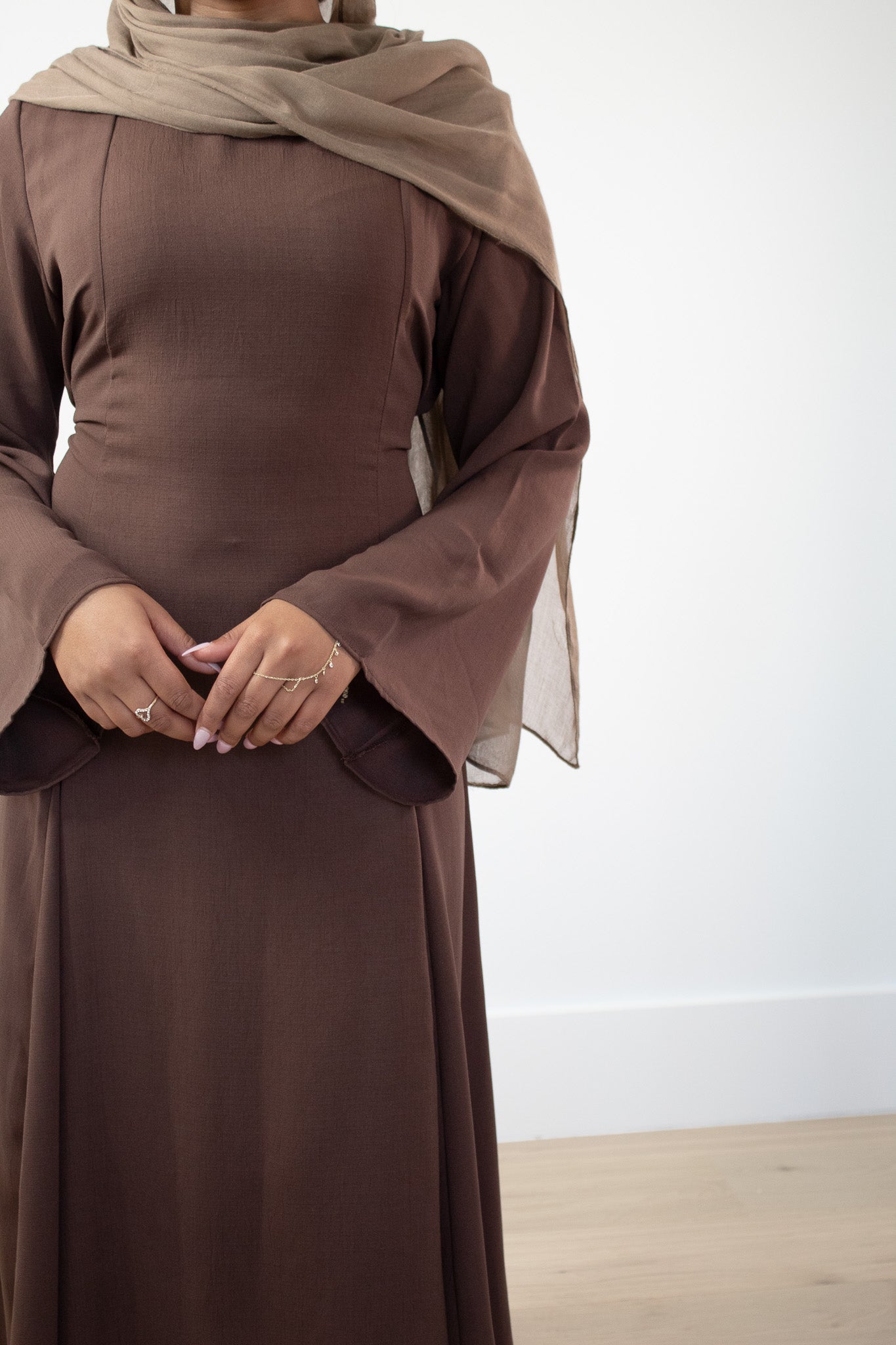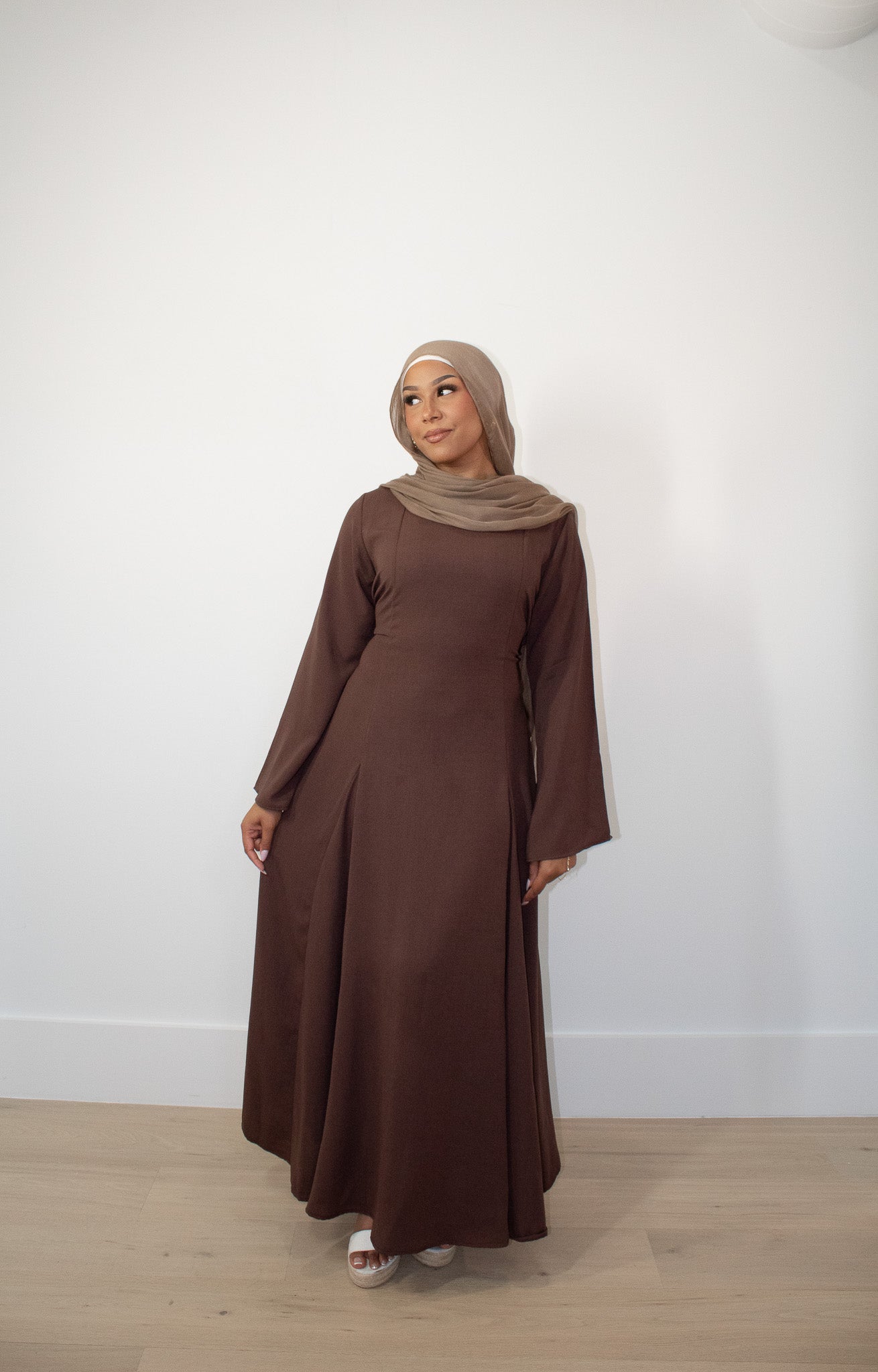 Timeless elegance meets everyday comfort in our Aidah Tie Back Dress. Designed with a modest silhouette and graceful flow, this dress features a flattering high neckline, bell sleeves, and a unique lace-up tie-back detail that lets you cinch the waist to your perfect fit. Whether you’re dressing up for an event or elevating your everyday look, this piece brings refined simplicity in three elegant shades.