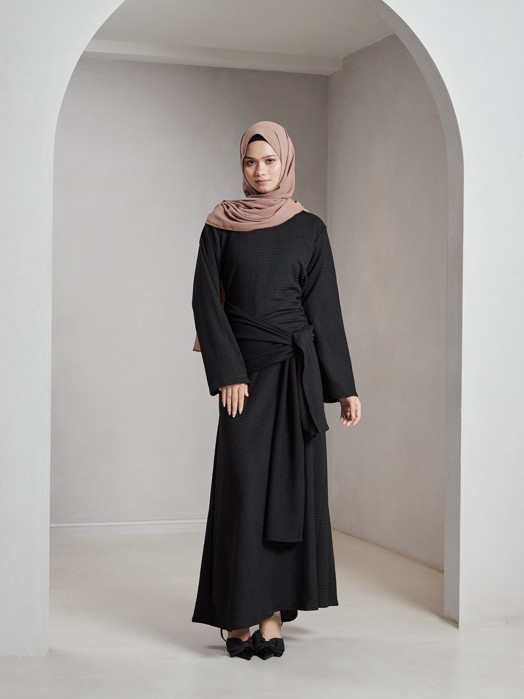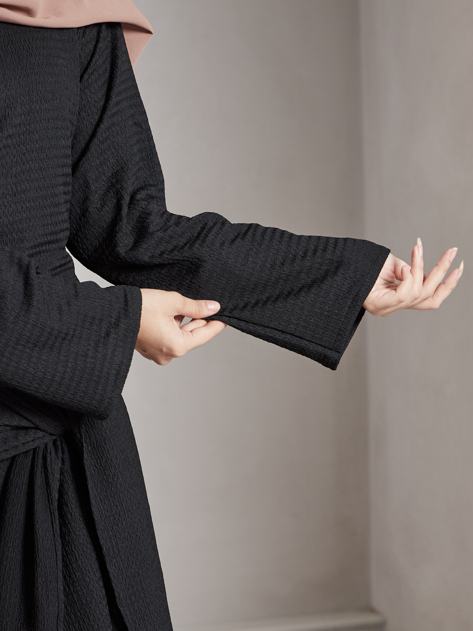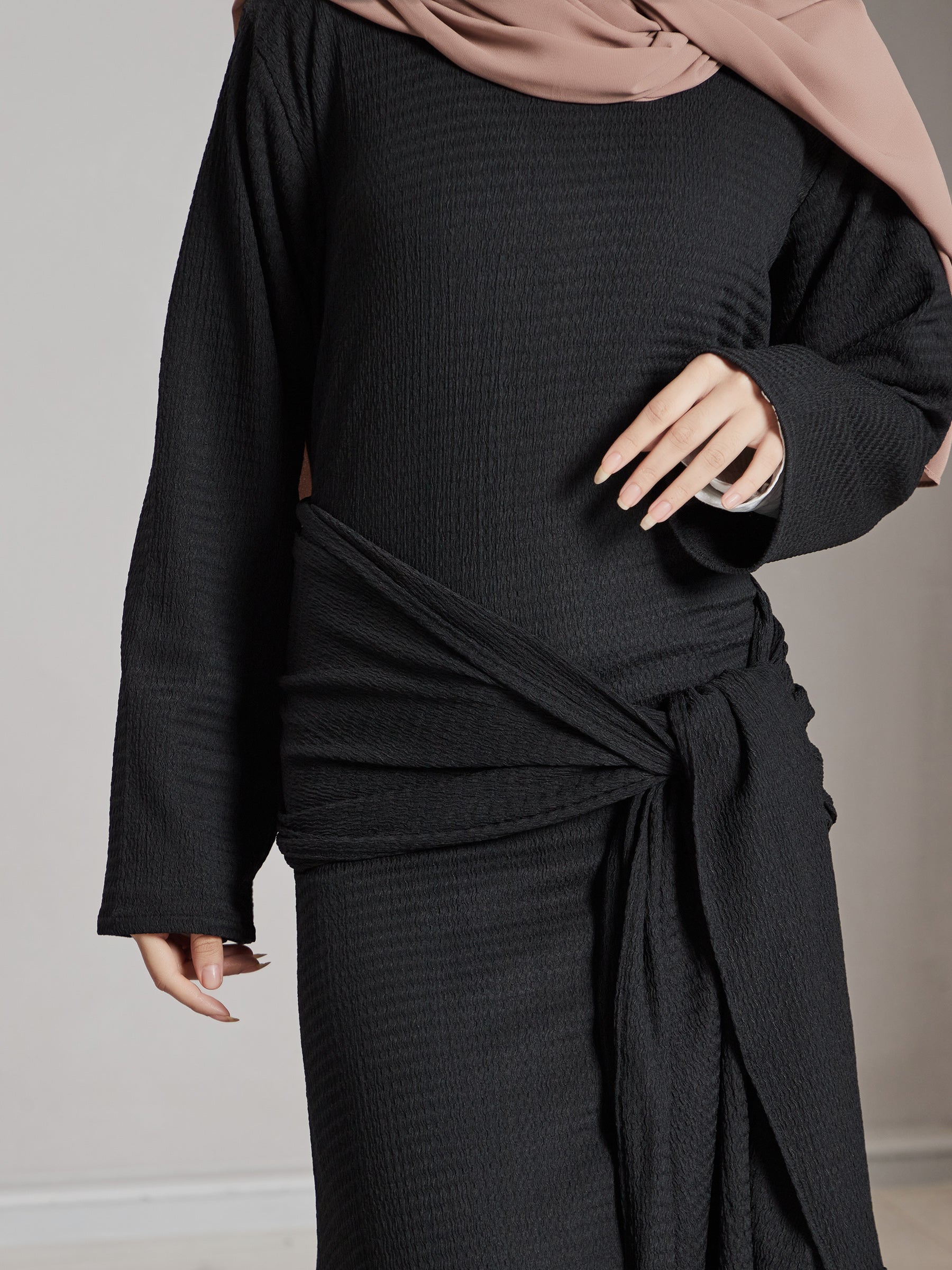 Amna Hand-knitted Tie-up Dress (Black)- Each Stitch a Labor of Love!