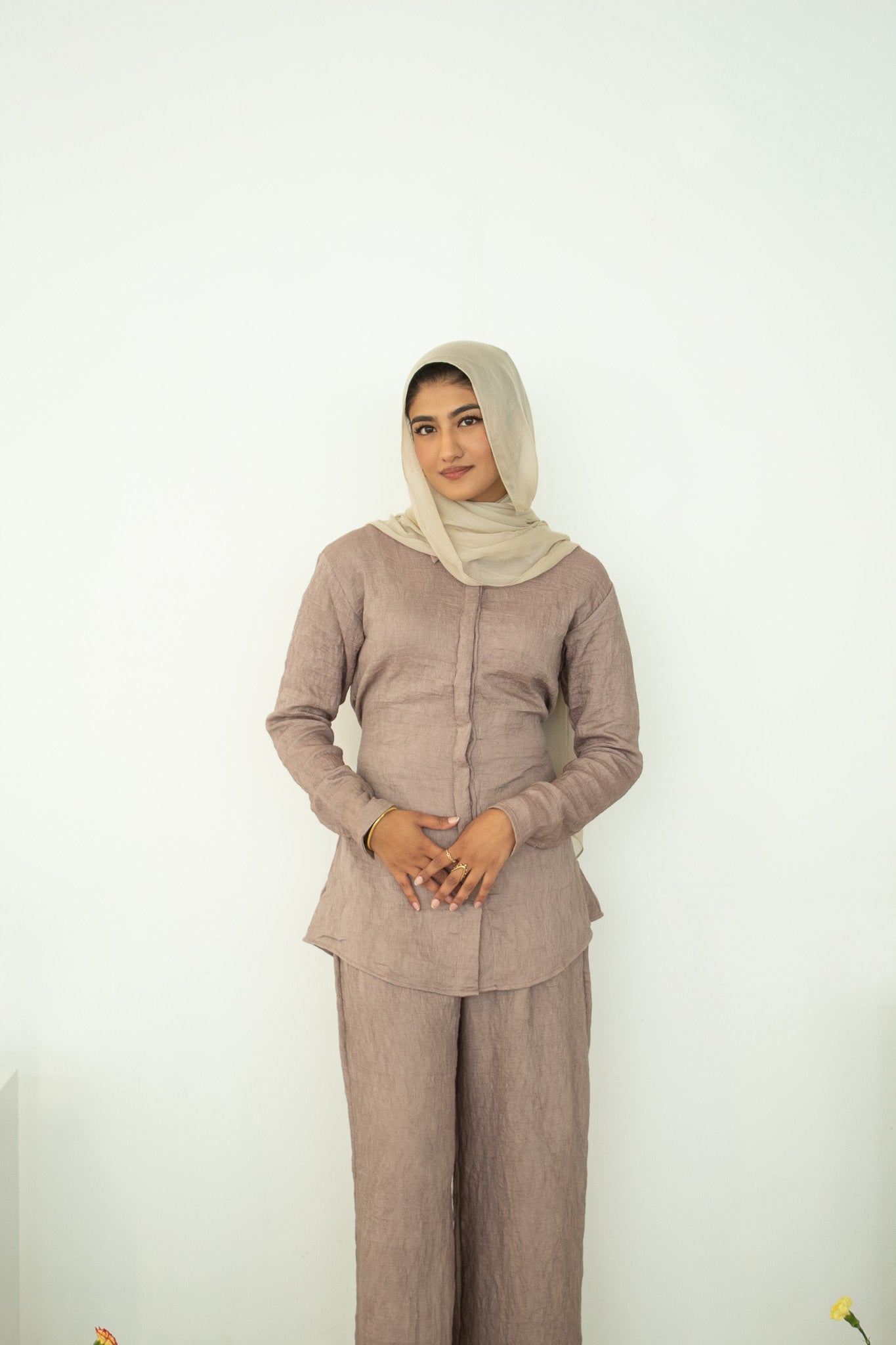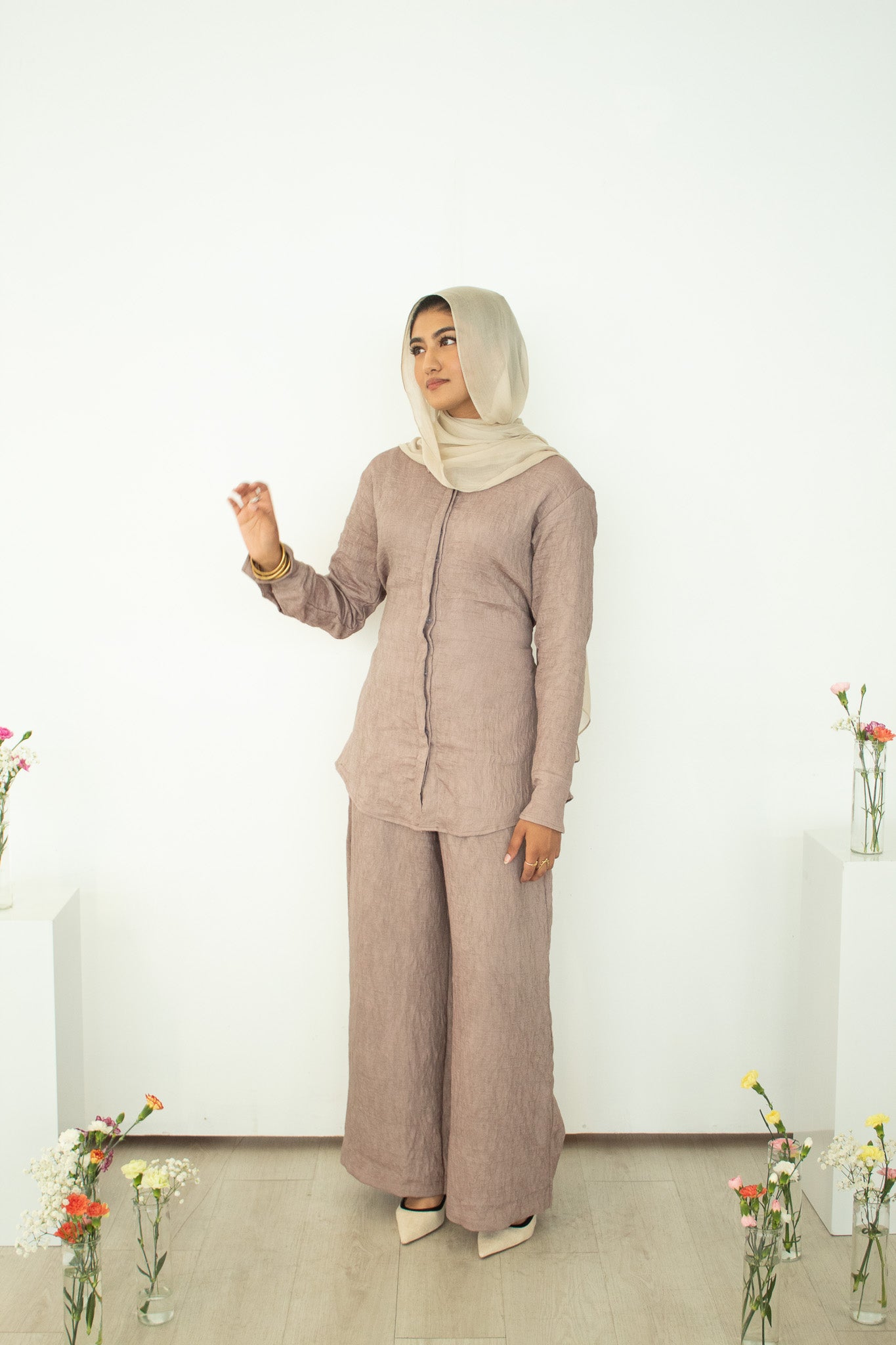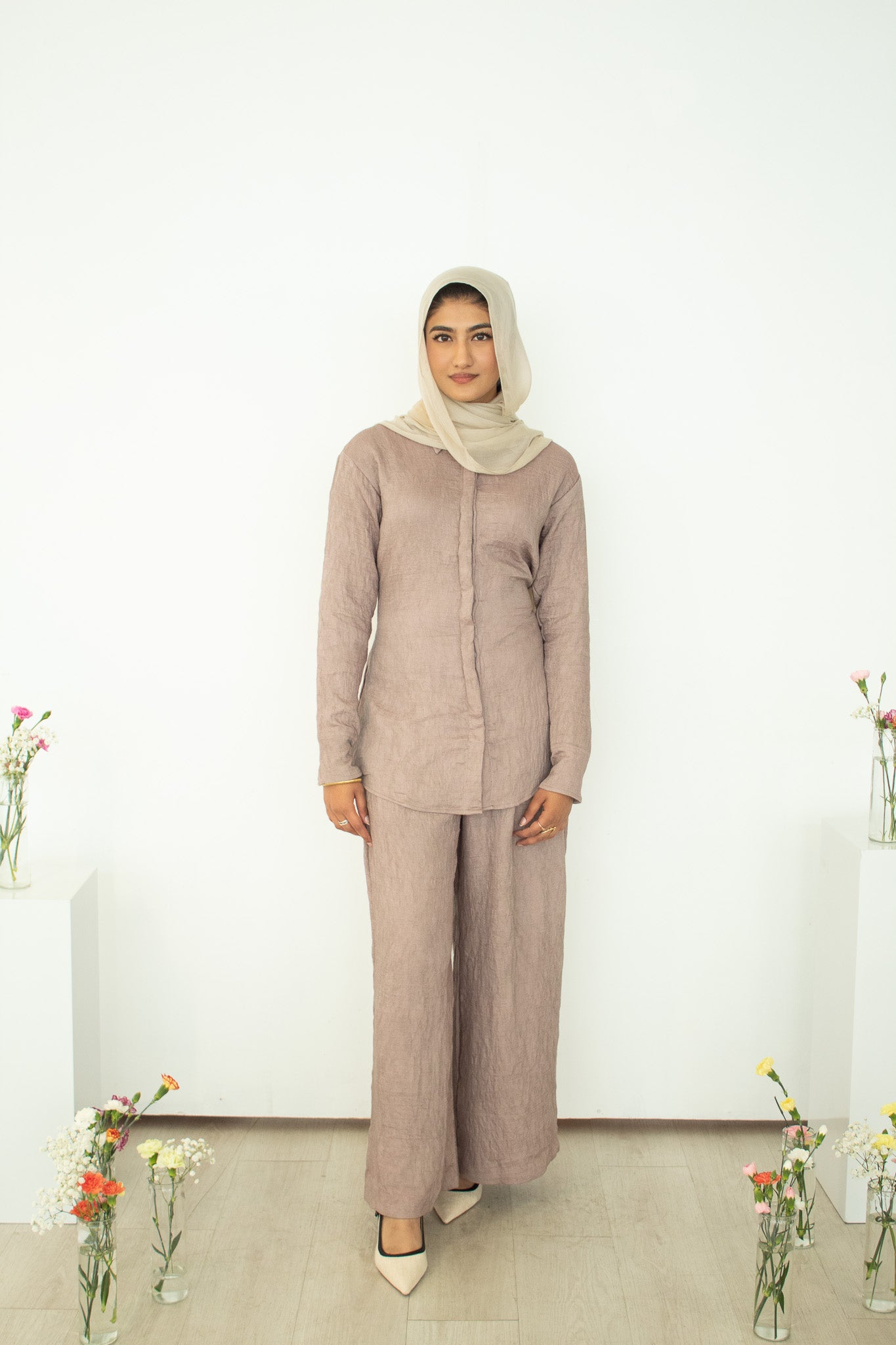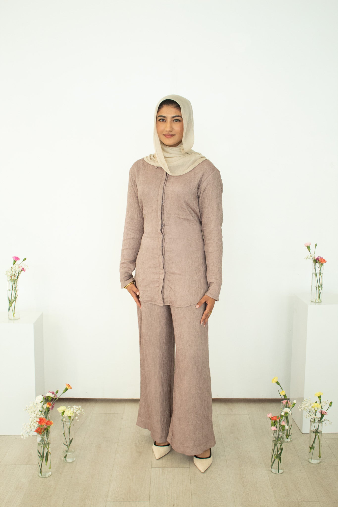 Lina Button-Down Set - Taupe