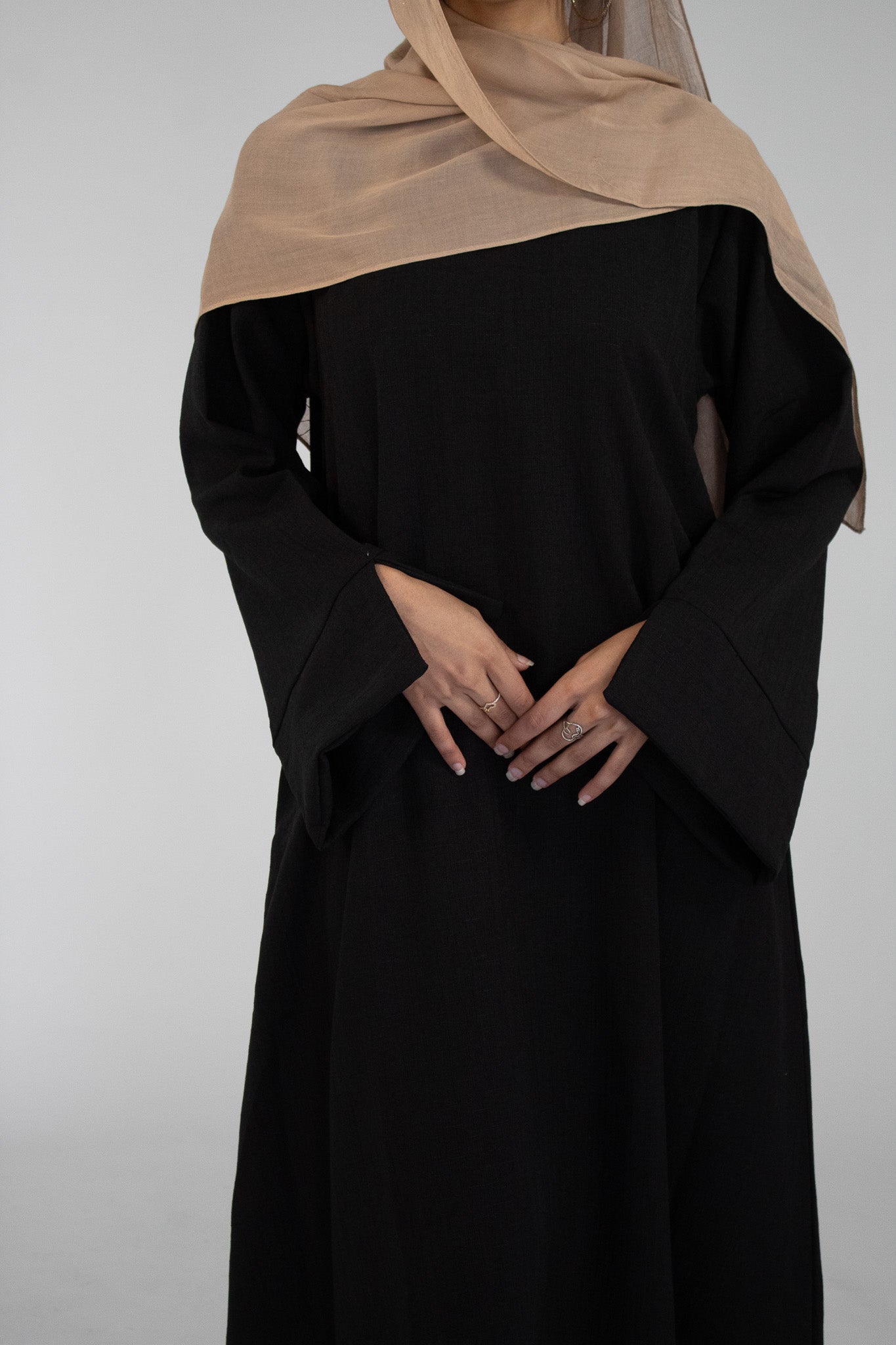 Whether you're attending Taraweeh prayers, hosting Iftar gatherings, or simply enjoying quiet moments of reflection, the Naima Linen Abaya is your go-to choice for a chic and modest Ramadan style.