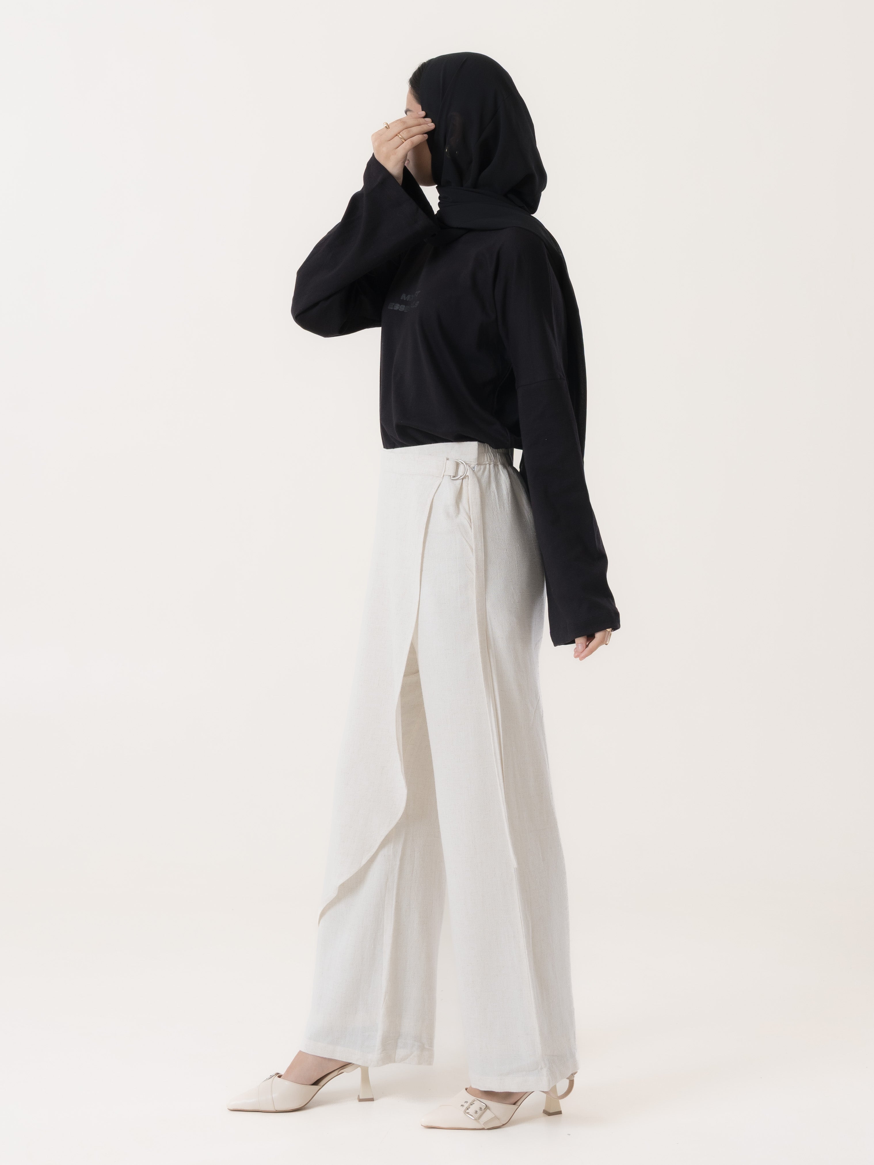 The Rumi Overlap Pants are a chic blend of comfort and street style. Featuring a built-in belt and edgy overlapping design, these pants bring a modern twist to modest dressing. Perfect for elevating everyday looks with effortless sophistication.